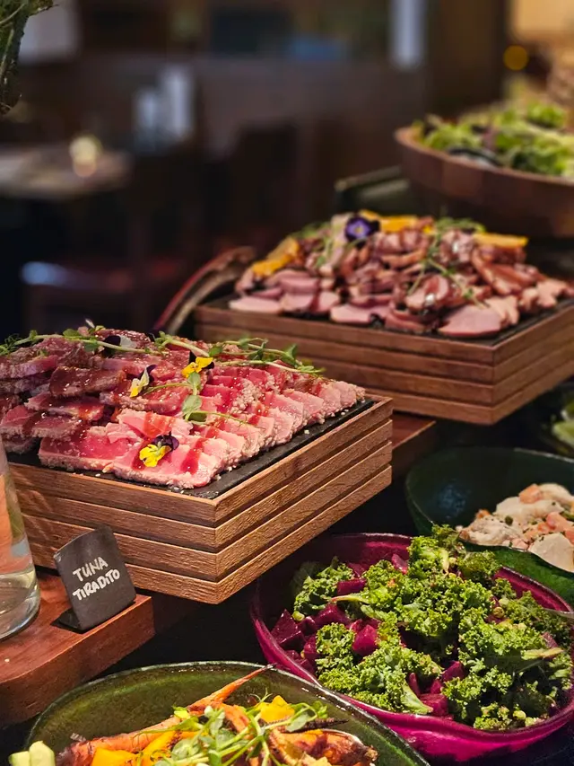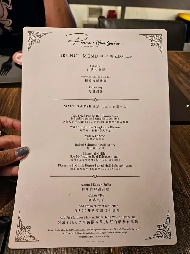 Weekend 最幸福就係訓到自然醒,然後岀街嘆返個靚brunch~所以今日嚟到Times Square食semi-buffet brunch,每位$388就食到勁飽!呢度仲有調酒師,仲會base on 你口味介紹啱你飲嘅酒。我哋就嗌咗杯cocktail Lanocheluz 同mocktail Secret Garden。酒味唔算重,好易入口,最緊要係打卡一流!😍頭盤已經好豐富,除咗有自助沙律bar外,仲有cold cut、煙三文魚、烤蔬菜等美食!每人仲會有舊焗到香脆嘅sourdough、南瓜湯同海鮮拼盤,有海蝦、元貝同埋黃金螺!老老實實,食晒啲頭盤都已經飽咗。跟住輪到主菜~呢兩款都係必點!香煎太平洋紅蝦及帶子闊條麵帶子鮮甜,而紅蝦又爽口大隻!闊條麵煙韌又彈牙,完全唔係街邊cafe質素。撈埋海鮮醬汁好惹味。炭燒8安士澳洲M5和牛肉眼(+$128)牛排好淋,食落一啲渣都無,仲煮得好入味!甜品都係自助形式~Tiramisu 大推!🤌🏿跟住仲包餐茶同cookies and cream 雪糕🤣真係夠晒飽呀!!…Read More