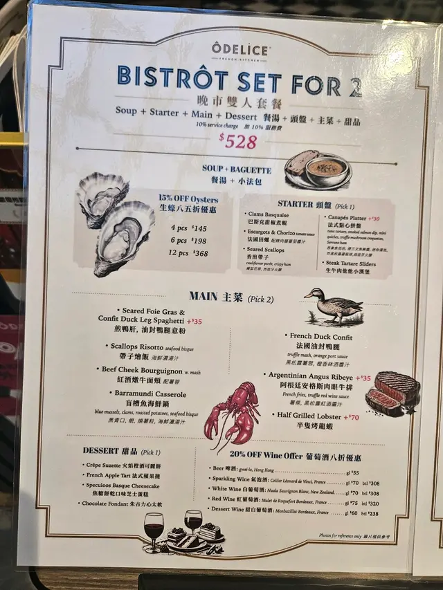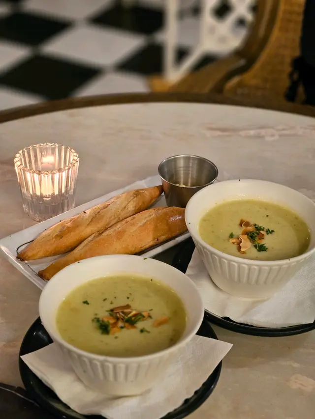 今晩去咗Popcorn商場食法國餐😍佢哋嘅2人dinner set ($528)性價比幾高,有四道菜。先係濃郁嘅餐湯Zucchini & basil soup 配上又熱又香脆嘅法包。頭盤嘅香煎帶子一啲都唔馬虎,帶子鮑甜彈牙,仲配上椰菜花蓉及西班火腿。主菜嗌咗法國油封鴨腿同埋安格斯肉眼牛扒(+$35)。估唔到鴨腿份量咁多,個鴨皮燒得好脆身,而肉質都可以保持同嫩身,再配上酒香砵酒醬汁同黑松露薯蓉,非常惹味。安格斯肉眼牛扒嫩滑,咬落去一啲韌感都無,另外仲有炸薯條,炸得金黃香脆好好味!甜品就係火焰橙酒可麗餅,店員會係你面前起火,做到火焰效果,好有氣氛!我覺得佢個橙味都幾重,未必啱每位嘅口味。仲嗌咗兩杯鮮榨果汁,真係好新鮮!Halo juice ($48)Gold Coast juice ($48)…Read More