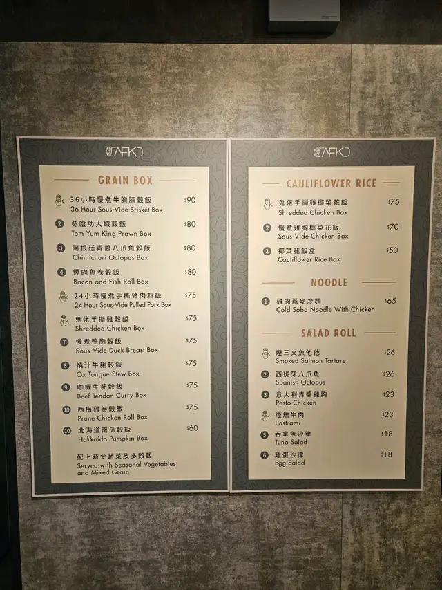 發現香港站開了間外賣店,主打健康穀飯飯盒,更有生酮選擇,有椰菜花飯提供。飯盒價錢大約$70-$80,不算便宜,但我下午1點來已發覺大多也賣清了,果然受歡迎~鬼佬手撕雞穀飯($75)有兩款手撕雞,是青醬和茄醬,兩款也很惹味,而雞肉也很嫩滑。飯是紫米飯,十分煙韌好味,而且飯量很多,男生也一定飽肚。蕃茄牛腩穀飯($75)牛腩份量不少,而且煮得腍而入味,還有小蕃茄同蟲草花等配料,健康又美味。蕃茄濃湯(+$15)蕃茄味很濃郁,絕對真材實料。質感杰身,不像溝了很多水的那種。天氣冷時喝很暖胃舒服。飯盒的菜量較少,所以我另外還點了兩款小食,也很好吃👍🏿涼拌芝麻菠菜($20)韓式涼拌芽菜($20)店舖名是AFK,原來是指「Away From Keyboard 」,幾有心思。…Read More