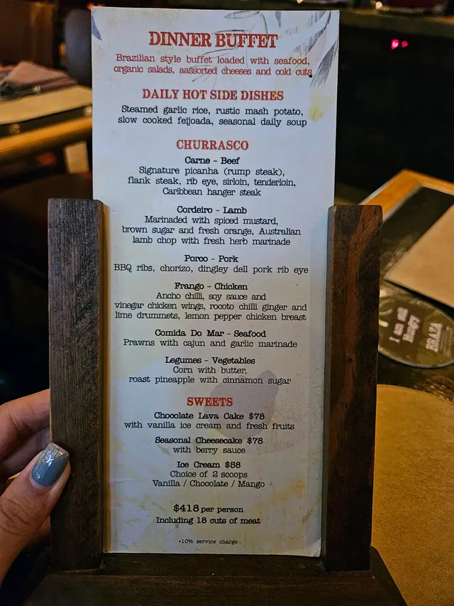 All you can eat protein in LKF! 😝 仲要性價比極高!晚市semi-buffet 都係$418/位,唔怪之得咁好生意。前菜buffet已經好高質,除咗蔬菜沙律,仲有海鮮、parma ham、牛脷、芝士等等,就咁食前菜都食飽。但記住記住要留返個肚!主角就當然係巴西烤肉喇!店員會攞住串啱啱燒起嘅烤肉去你面前問你要唔要,要就即場切出嚟畀你。過程好有興奮,仲好期待佢會拎咩肉岀嚟。So far 都食咗好多肉,有西冷、豬肋骨、豬腩肉、羊肉、腸、雞、燒菠蘿等等。我嘅推介係燒雞、雞槌雞翼同蒜蓉薯條!薯條好食到encore,因為唔係用蒜粉,而係用嘅蒜粒! 另外嗌咗杯椰子味好濃郁嘅mojito同埋lemonade 🤪…Read More