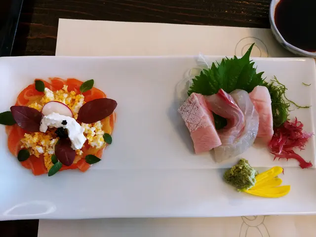 第一次離呢間,點咗個2人午餐,估唔到有咁多嘢食,前菜有鮑魚片同螺仔,相當入味,又唔會韌,之後到刺身,有5款,其中1款係三文魚沙律做法,賣相特別,所有刺身都好新鮮之後天婦羅,重點佢唔係一般嘅天婦羅,佢係帶子!!!好少日本料理會有,一食就愛上❤仲有魚扒同牛肉串,魚扒個汁好正,牛肉串整得啱啱好,又唔會干!仲有蕃茄仔隔住離食無咁漏,基本上食到牛肉串已經飽咗😂😂😂😂😂但仲有烏冬同炒雜菜,真係飽都要食完佢,因為好味呀!!!!!最後離個甜品抹菜雪糕,必食之選…查看更多