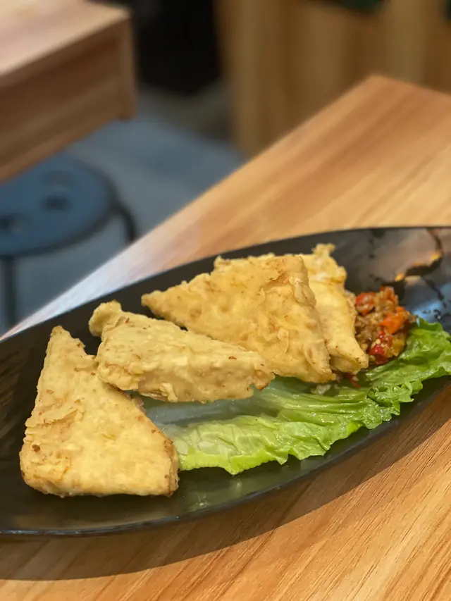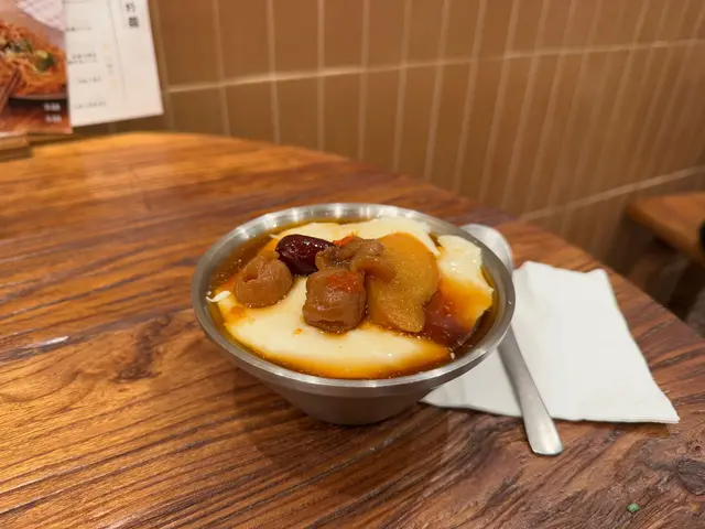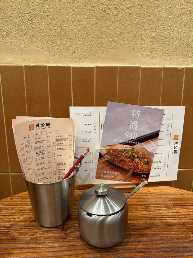 想去嘉多娜買開心果燒餅,途中經過間專做豆品既餐廳比個落地大玻璃同開放式廚房吸引左)又feel到肚餓就入去食D野先。店內裝潢好有中式/公館feel,主要係大地色配木系枱櫈~我地都叫左唔少野食,講明係賣豆既店,一定要試豆漿啦,豆漿味道都幾多選擇,叫左無糖同黑芝麻豆漿,由於無糖關係所以會比較濃但會飲到少少澀味?定係燶味嘅感覺?所以黑芝麻係好飲啲有淡淡芝麻香同埋少少甜味。 等咗一陣就嚟咗一份魚肉煎豆腐,魚肉比較薄但件豆腐就好好味,質地夠滑😋(可以encore) 杞子元肉紅棗黑糖豆腐花,賣相好吸引有兩大片薑、幾粒龍眼肉,豆腐花食落有薑味但唔會太辣幾啱女士!老乾媽炒米粉比較普通,不過入邊真係有好多嘅蔬菜🥬 麻婆腐皮豆漿蛋餅,面頭麻婆豆腐醬有啲鹹同濃味,好難食到中間腐皮嘅味道不過我自己就幾鍾意入邊包住啲銀芽同埋蘿蔔絲令到個蛋餅有口感。 滷水豆腐豆卜淨係熟悉嘅滷水味,不過個豆卜就感覺上有啲油膩、豆腐就不過不失~ 下次經過嘅話可以再試佢嘅豆漿同埋豆腐花🤭…查看更多