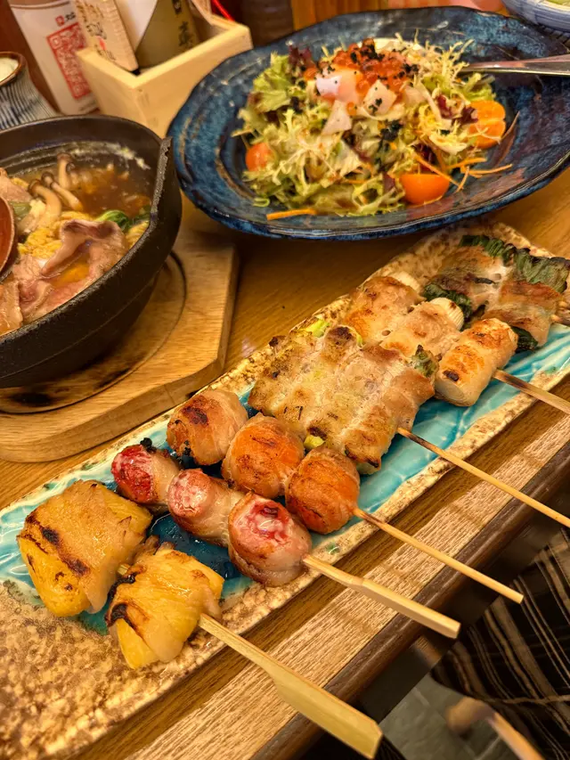 幸福鳥,名字好吸引所以決定一試,第一印象係餐廳裝潢好靚,好有日本居酒屋feel,個人偏好吧枱座,可以近距離觀察廚師下廚,感覺望住廚師烹調會令酒菜更加美味。.食物方面我哋嗌咗雜錦刺身沙律、五品盛刺身、避風塘九州槍魷魚、福岡豚肉卷六盛合、牛肉壽喜燒,食材新鮮,魷魚上面啲蒜非常加分,壽喜燒湯汁帶甜都喜歡,2個人埋單HKD$1200左右。…Read More