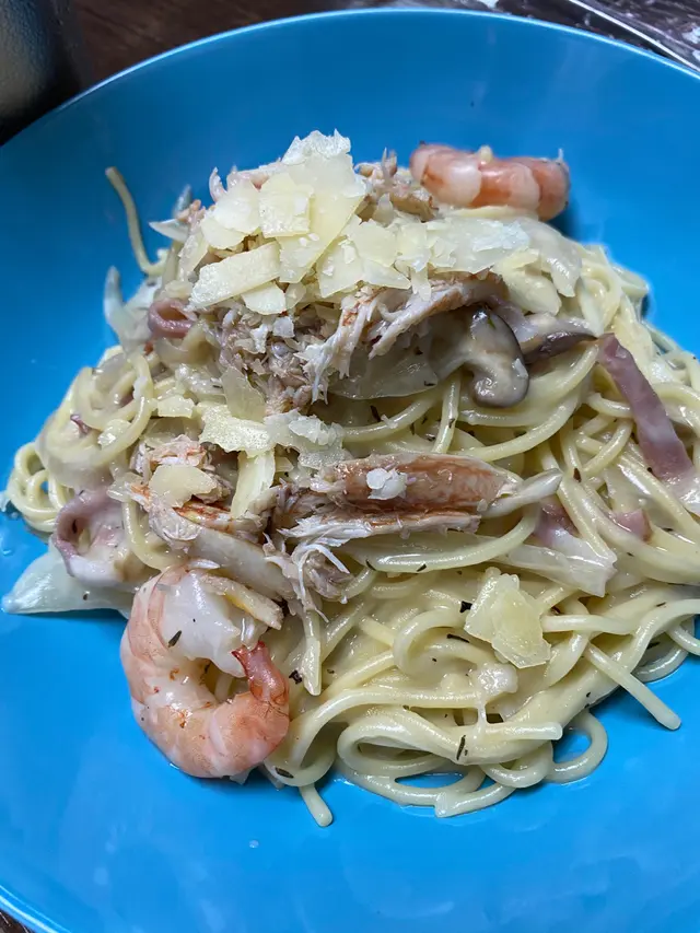 蟹肉虎蝦卡邦尼芝士意粉