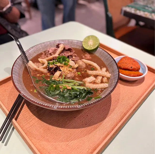 餐廳主打馬來西亞菜式,食物質素都唔錯,特製辣椒板麵、入面有好多配料,豬油渣、肉碎、蝦米、魚仔、炸蒜仲有蛋,口感好豐富😆😆辣死你嗎配仁當牛肋條,加上辣椒醬,味道岩岩好配左個綠色班蘭飯非常吸晴✨海南鴛鴦燒麵包🍞好香咖央配上大大嚿牛油入口即溶😋好好食。✨特製辣椒板麵✨辣死你嗎配仁當牛肋條✨海南鴛鴦燒麵包…Read More