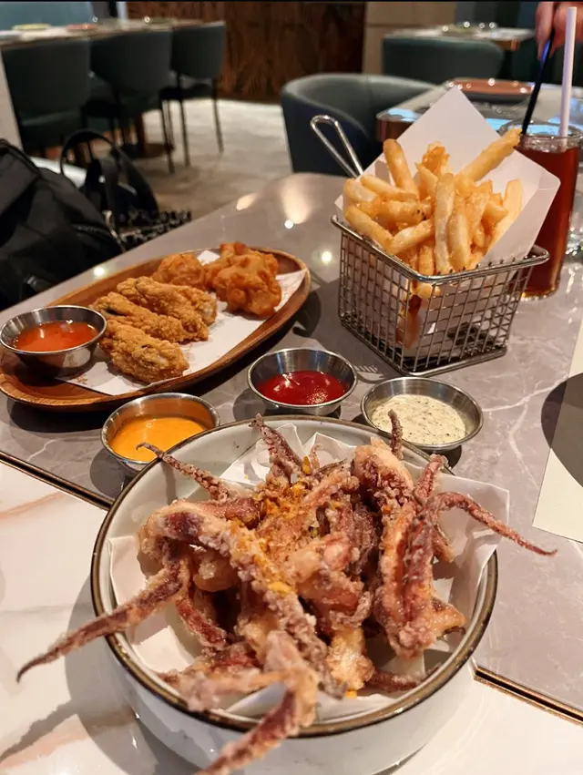 Beans人氣餐廳平時好多人排隊,環境好舒適,約朋友試吓唔錯選擇,叫左特色櫻花蝦蛋黃醬沾麵個醬汁煮得啱啱好。✨櫻花蝦蛋黃醬沾麵✨比目魚鮮忌廉周打海鮮濃汁魚下面仲有薯蓉✨車打芝士薯條…Read More