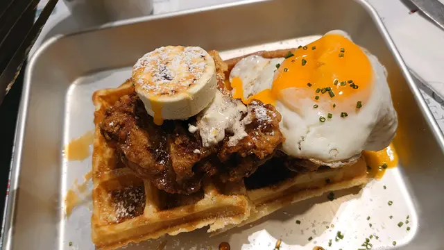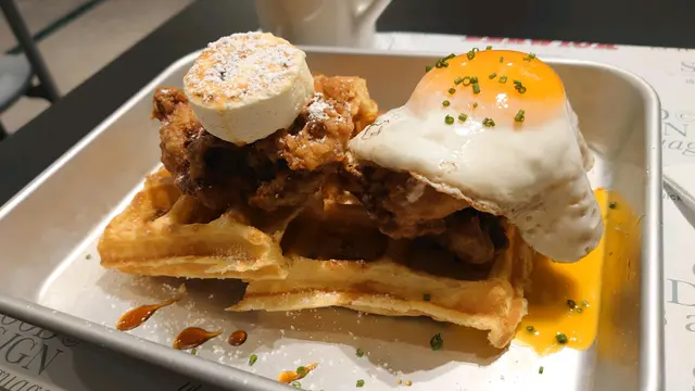 第一次認識sir berwick係係IG上面。同香港常見簡約文青風唔同,佢大膽嘅美式混日式視角非常吸睛,更令人印象深刻係食物嘅相……見到第一眼已經下定決心,第二個星期就去左探店。舖頭location 係西營盤一個安靜嘅小橫街,一入到去店員姐姐就主動帶位,重親切咁同新顧客介紹menu。我因為怕膩就無叫到店員推薦嘅waffle 野飲set, 而係叫左waffle加咖啡。咖啡是可以refill的,加分。食物好快就上桌。首先必須要講,佢IG誠不欺我,IG張相有幾精緻,食物實際就如宣傳圖……窩夫,炸雞,太陽蛋,樣樣都係新鮮製作,咬落去更不得了,窩夫100分,食物嘅質感勁match。更驚喜係佢唔膩,調味相對溫和,就算食到七八成都停唔到口,每一樣食物無論點搭配都出色,蛋配窩夫,奶油配雞,雞配蛋……上面糖粉都好出眾,可以話每一樣野食佢地真係諗過度過先combine 一齊,勁掂。食到最後非常滿足,唯一遺憾係無飲到店員推薦的野飲,不過唔緊要,已經plan緊encore。可以做到宣傳店面視覺同食物質量都咁出色嘅小店唔多見,一定可以越做越好👍👍👍…查看更多