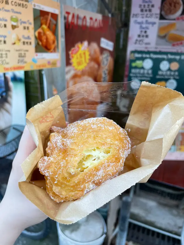 大澳一直係小編心目中嘅香港離島No.1,由讀書到而家出嚟做嘢,每當想放鬆但又飛唔到嘅時候,都會諗起大澳。講到大澳名品,新鮮熱辣嘅沙翁絕對係頭三。小編當日去嘅時候,剛好碰上老闆娘新鮮炸起嘅沙翁。💛名品沙翁💛 HK$15 (外賣盒再加多HK$2 )炸起嘅沙翁差唔多有一個拳頭咁大。金黃色嘅外皮口感好似新鮮炸起嘅油炸鬼,入面嘅內餡柔軟,但又比蛋糕多一分彈性。由於空氣感恰到好處,小編食完飯後再食一個沙翁,都唔會話太飽。沙翁雖然係油炸,但絕對唔油膩。餘溫未能將表面嘅砂糖融化,砂糖嘅顆粒感令到整體口感更加豐富。老闆娘亦有賣糯米糍,下次可以試吓。…查看更多