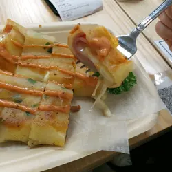 蜜汁紫菜排骨飯 💰60🌟排骨炸到好脆口,又唔會乾🌟仲有好多紫菜,撈飯一流另外有試芒果魯肉飯係真係意外地夾,都值得一試個人覺得蜜汁紫菜排骨飯嘅驚喜大啲😍拉絲芝士火腿蛋餅 💰35(試食價)🌟真係拉到絲,食到凍咗少少都拉到🌟芝士份量多到爆又唔會去到好膩芋泥肉鬆脆皮麻糬蛋餅 💰35(試食價)🌟一眼睇曬👉🏻啲料夠足🌟比例都啱啱好,完全唔膩兩款蛋餅都唔錯😋個人偏好芋泥肉鬆多啲,相比芝士火腿冇咁膩如果食飯又想食蛋餅同人share食就啱晒三十幾蚊嘅蛋餅點可以唔叫?🤩熱款只有兩款▪試咗白桃烏龍茶,普普通通,冇乜特別🌟值得一提嘅係店員嘅服務態度真係好掂🌟係抵食加服務好嘅餐廳💯…查看更多
