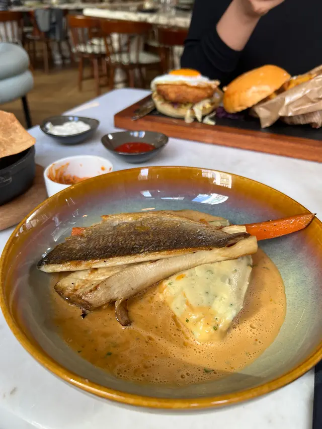 拉咗個同事同我試呢間餐廳,平日2點半左右嚟到無咩人,叫佢個set lunch仲可以free-flow iced tea,坐耐少少都唔會有人趕。我哋2個決定試佢個set lunch,同事叫咗個burger,我就要咗個fish of the day:🥣Potato and Leek呢個湯又好味喎,大蔥味好出,如果唔鍾意呢個味嘅我建議唔好試,但我就覺得唔錯,暖暖哋,杰度適中,我唔好大蔥但都覺得好味👍🏼🍔Vienna SchnitzelBurger賣相吸引,同事話好食,我就淨係偷咗幾條薯條食,雖然係幼薯條但都炸到好脆好惹味👍🏼🐟Sea Bream FilletFish of the day 係呢個,魚煎到皮脆肉嫩,好香口,杏鮑菇好juicy,再跟咗薯蓉同甘筍,我清咗碟❤️因為仲要做嘢,所以就算叫咗iced tea都只係飲到一杯就走,但其實佢好大杯,即使係bottomless 我覺得最多都係飲多一杯都會好飽,呢呢個lunch 170蚊左右埋單,忙裡偷閒我又覺得ok喎😜…查看更多