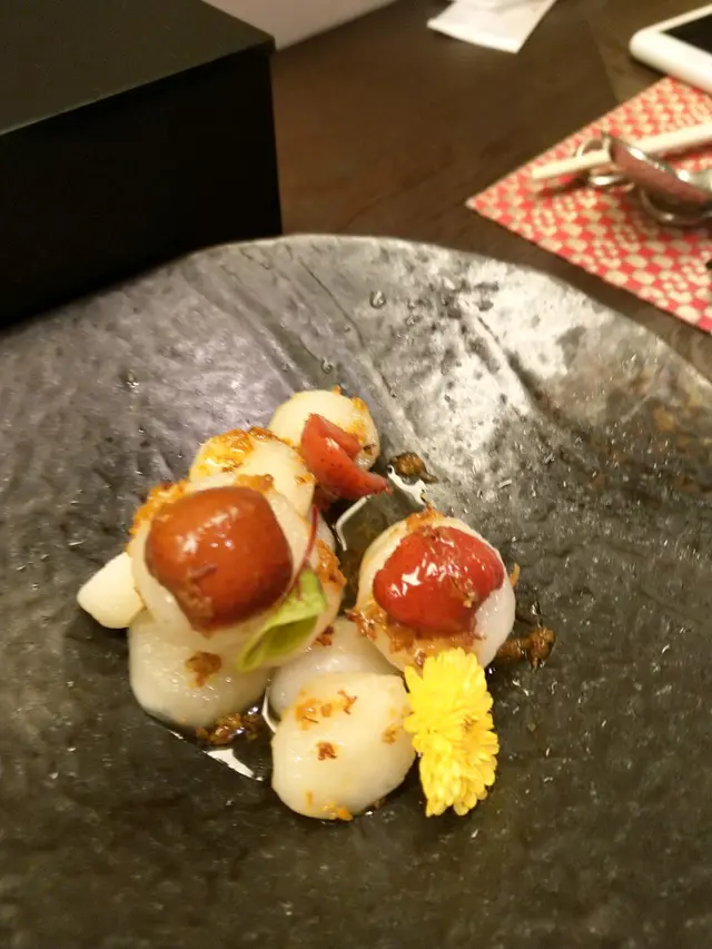 創作割烹Stella,位於the ONE 三樓,門口不太起眼,但原來內裡別有洞天。開房式廚房,可以見證廚師專業地將食材烹調為美食的過程,亦是店名割烹之意。裝修整潔,燈光柔和,寧靜而有氣氛。Welcome Drink 入口清甜而不嗆。這晚試的是5 Courses Tasting Menu,先試了前菜。鯖魚刺身配青蘋果啫喱大閘蟹膏紅蝦刺身配果醬意大利菜著重使用新鮮食材,配以簡單的烹調。三款前菜都能食出食材的鮮度,調味簡單而襯托到食材的原味,能夠充份打開味蕾,為之後的主菜準備。接著是主菜。和牛舌酢漬姬菇牛舌厚切成方粒,表面香脆,但入口鬆化,而酢漬姬菇的酸味可以中和和牛的肥膩。鮮鮑魚浅蜊富山米意大利飯鮑魚新鮮有咬口而不韌,有陣陣醬油香。以日本富山米煮成的意大利飯,的確是日意Fusion,口感比傳統意大利飯軟綿。面頭的鮑魚肝醬香濃鮮味,為免味道太過突出,廚師在醬加入了紫蘇葉,加上一抹清新,令整個意大利飯更平衡。日本A5和牛配味噌大根其實A5和牛充滿油脂,過低的熟度會食起來會整口油,非常肥膩。欣賞這裡的和牛煎至五成至七成熟之間,迫走一定油脂,反而更能食到牛肉的甜味,而不失奶香大根就以高湯烹煮,十分鮮甜,味增醬和外面的芝士提昇了味道的層次。栗子吉士批作結的甜品,味道比平常的甜品較輕盈,整個吃下也不怕負擔,能夠品嚐到蛋香和栗子的味道。餐廳環境及食物質素都令人滿意,聽侍者表示餐廳會定期換菜式,有機會會再來試試。…查看更多