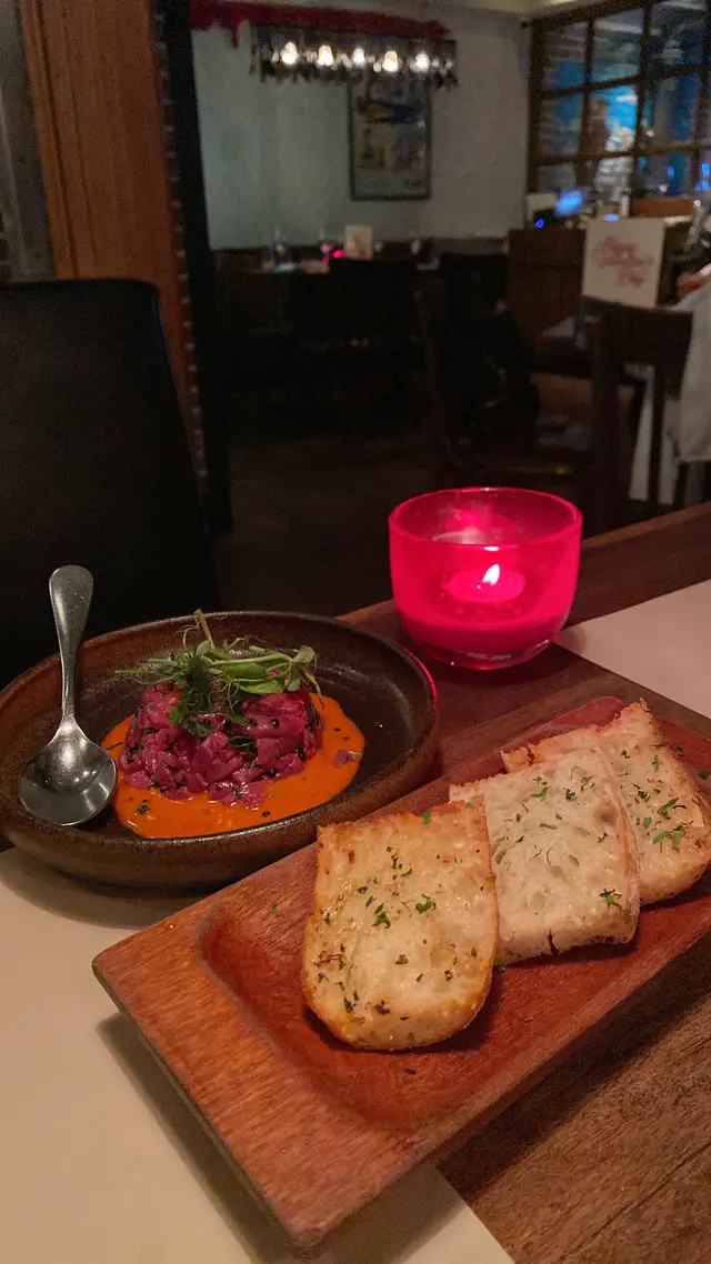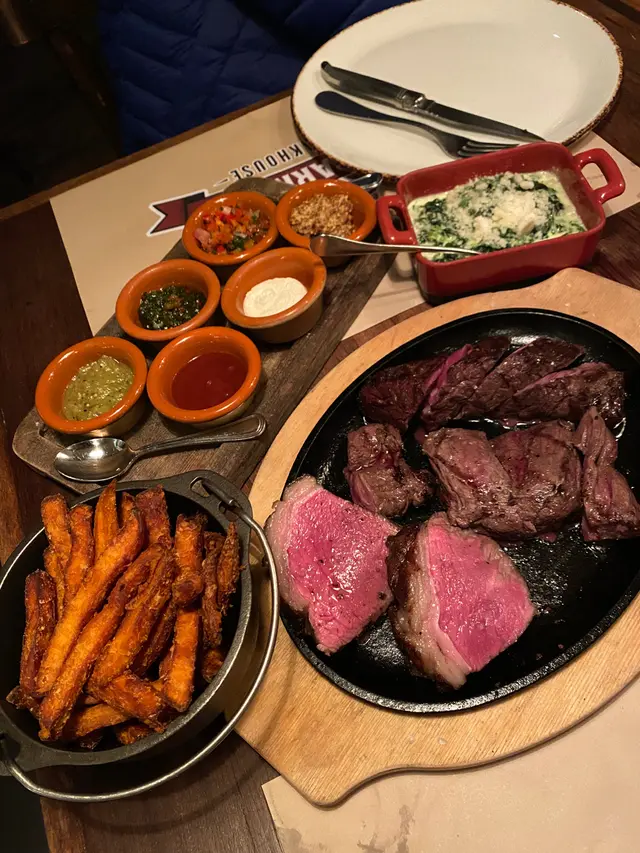 一直聽講呢間阿根廷牛扒店好出名,終於的起心肝去試。開放式廚房好有氣氛,睇住廚師喺火爐前烤牛,跳動嘅火焰係迷人嘅風景,不過空氣中瀰漫嘅油煙,確實為呢場盛宴添咗份真實感。今次試咗:・ 澳洲21日乾式熟成黑毛安格斯 (Medium Rare) - 炭燒香氣到位,但牛味偏淡,肉質有咬口,青醬嘅味道搶咗鏡・ 香煎三文魚 - 稍稍過火,配菜反而更出色・ 牛油青菜 - 蒜片同芝麻炒得好香,牛油味濃得嚟層次好豐富。・ Mac & Cheese - 全晚高潮!芝士濃到黏脷,面層麵包糠烤到脆脆的,邪惡到極點・ 鴨油薯條 - 香脆,充滿蒜香好惹味,但唔太食到鴨油特色主菜冇預期中驚艷,最好味反而係個邪惡Side dishes-Mac & Cheese。如果你同我一樣係芝士控,呢度嘅side dishes可能比牛扒更值得你來。#hkfoodies #香港美食 #hkfoodieblogger #hkfood #hkfoodshare #foodie #central #steakhousehk #steakhouses #argentinsteak…查看更多