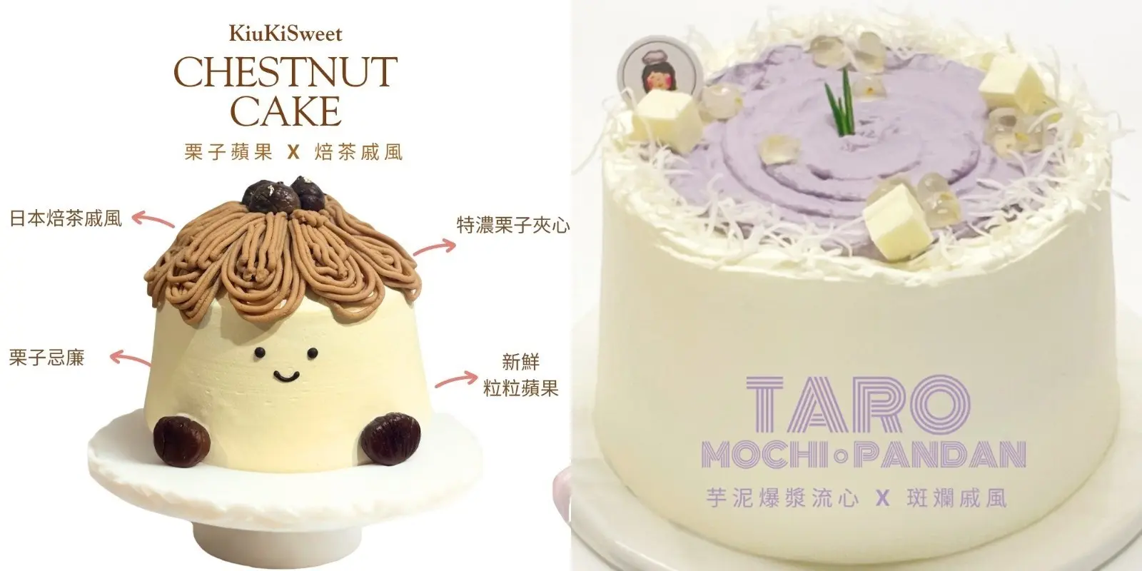 戚風蛋糕口感輕盈,唔少人都鍾意食~呢間甜品店嘅戚風蛋糕內裡好似層層疊咁,「栗子蘋果×焙茶戚風」就有特濃栗子夾心、栗子忌廉同新鮮粒粒蘋果,香甜有咬口。「芋泥爆漿流心×斑蘭戚風」亮點係自家手工製無人造色素低糖芋泥,入口奶香軟糯,加埋QQ嘅牛乳麻糬、海鹽椰子爆漿流心同輕芝士忌廉,愈食愈過癮!佢哋仲有盒子蛋糕,包括招牌伯爵奶涷海鹽焦糖、鐵觀音奶涷栗子蘋果等口味都值得一試。