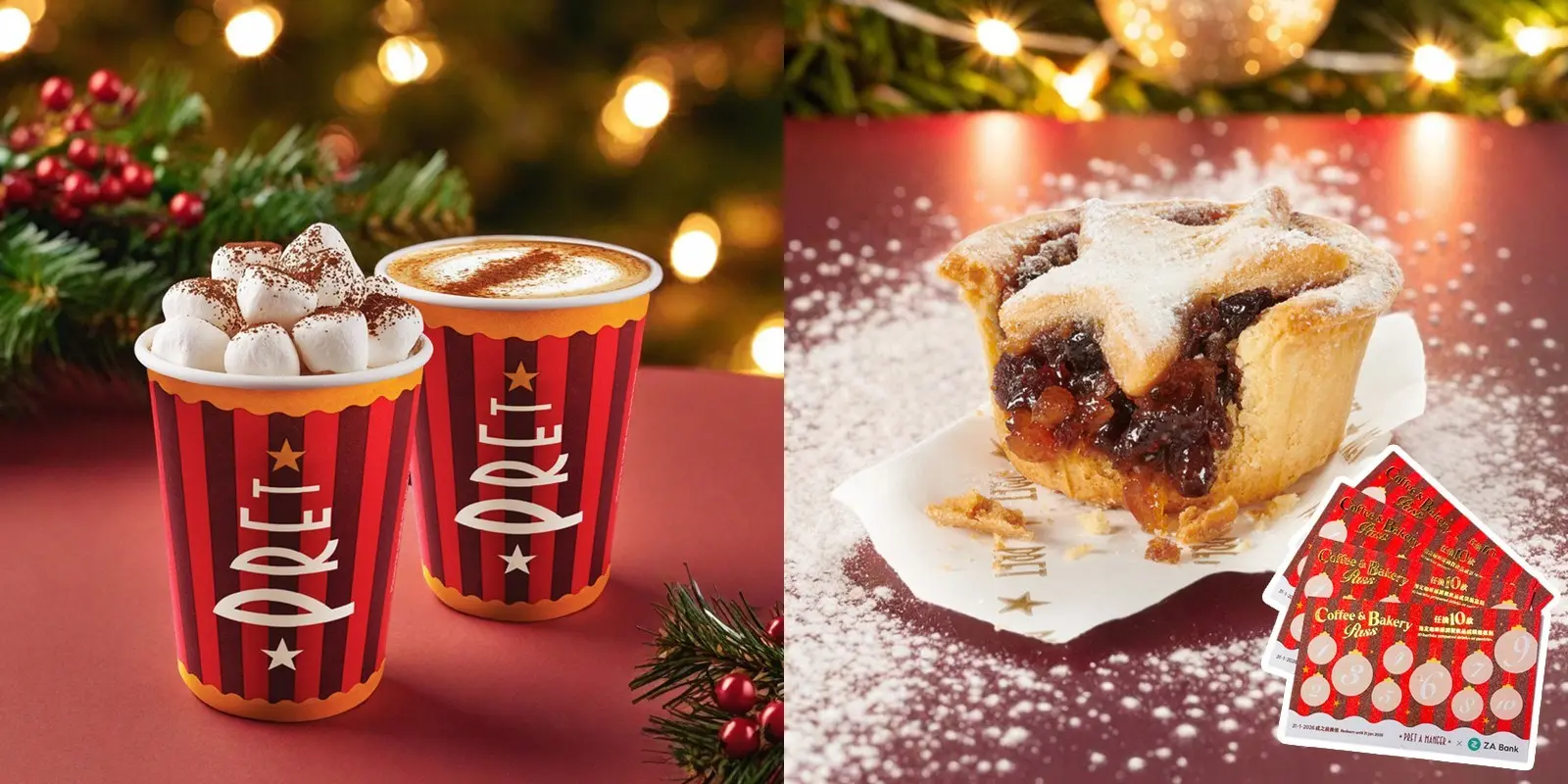 聖誕節至適合飲杯暖笠笠熱飲配甜點~呢間人氣英國連鎖咖啡店推出送禮自用皆宜嘅聖誕節特別版「Coffee & Bakery Pass」咖啡卡,客人可憑卡自選10款飲品或者烘焙酥點,平均低至$18.8,而且優惠喺外賣、 堂食都適用,CP值高!聖誕特飲心水推介棉花糖薄荷朱古力、薑餅牛奶咖啡,至於聖誕節日限定嘅烘焙酥點都有好多款式選擇,包括英國麵包師親手製嘅聖誕乾果批(限量發售)、肉桂皇冠酥、朱古力布朗尼旋風卷。除咗期間限定嘅節日款式外,招牌法國牛角酥、黑朱古力杏仁曲奇餅都值得一試~