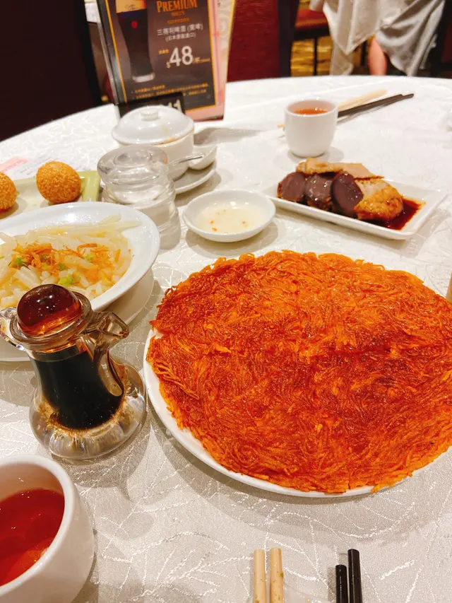 今午我約了幾位老友記相約共聚在百樂潮州,我們點咗百樂蝦餃皇、蟹子粒燒賣、陳皮牛肉腸、潮式糯米卷、潮州蒸粉菓、淨鹵水鵝片、乾煎糖醋麵及反沙芋,似乎這是一餐好豐富的潮式飲茶盛宴。首先上枱的是這家的百樂蝦餃皇、蟹子粒燒賣,蝦餃皇吃來蝦肉都幾鮮,至於燒賣則入囗有啖啖細緻的鮮甜味。可是,百樂的沒驚喜之作,包括了陳皮牛肉腸、潮式糯米卷及潮州蒸粉菓,假如我用盲測試,我估計冇人能猜中哪一些是百樂的製作。當這次品味中陷入低潮之際,淨鹵水鵝片及乾煎糖醋麵是驚喜的一番之作,只因鹵水鵝片入味及嫩滑,入口感覺良好,而乾煎糖醋麵則很脆及很有趣,配合糖醋而食,味道升華不少。壓軸是反沙芋,我很幸福能嘗試了這特式的潮州甜點,這甜點,外層很甜又很脆,可是内𥚃的芋條好似不夠新鮮。最後,我建議百樂能在其潮州名點中再研究一下,試試可否提㫒其口感,好讓衆客人能完餐後,帶著幸福感離開。…查看更多