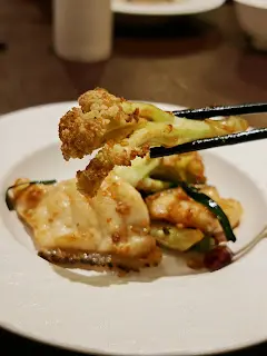 問月酒店內有家精緻的私房餐廳,佈置有品味,仿如從前富貴人家的大宅,兩個人無需花時間思考,點吃嘗味菜單,可以多吃幾款!每位$688,前菜三款、五道菜加一款甜品,菜色多元很豐富。竹炭鹽腰果我覺得這個腰果非常好食,鹽香出眾,我甚至覺得有多少黑松露香。椒鹽糖心鮑魚.鴛鴦海蜇絲(Crispy Abalone with Salt & Pepper, Jelly Fish in Szechuan TPepper Sauce e French Scallion Sauce)最欣賞鴛鴦海蜇絲,尤其是法蔥造出綠色醬汁,口感清新討好,與爽口的海蜇是很合拍。另一口味是麻辣,香港人口味的中辣,都唔錯。鮑魚也可以。金腿蟹肉燴冬蓉羹Winter Melon Soup with Crabmeat & yunnan Ham湯清味醇厚,蟹肉的鮮、金腿的鹹香與軟綿綿的冬蓉混合,每一口都是滋味,這個湯羹我很鍾意。廿年陳皮拔絲虎蝦球Sweet Sour Tiger Prawns with 20 years aged Dried Tangerine Peel整體做得唔錯,拔絲黏調起絲,濃甜帶少許酸,除了有整粒蝦球之外,有荔枝肉及炸漿脆脆。不過個人口味而言,我就覺得過甜了,而且覺得濃郁的咕嚕汁奪了蝦的鮮味,還是咕嚕肉比較夾。文火和牛Slow cooked wagyu with homemade sauce慢煮和牛點可能會唔好食,炆到完全軟透,配合秘製牛肉汁,仲有炸腸粉,豐富飽肚。乾燒椰菜花龍躉Braised Giant Grouper Fillet, Cauliflower, Pepper Oil椰菜與龍躉皆煎得很香口惹味,龍躉肉厚嫩滑,好吃!蝦子花膠濃雞湯拌菜苗手工拉麵Chinese Noodle in Chicken Broth with fish Maw, Dried Shrimp,Vegetable這一道手工拉麵我也很喜歡,簡單就是美,湯頭濃郁,拉麵有彈性。陳皮蓮子紅豆沙粒粒幼沙,充滿陳皮香,同伴是紅豆沙專家,告知做法隔了沙,這是大戶人家的喜歡的吃法。#大宅 #銅鑼灣 #粵菜…查看更多