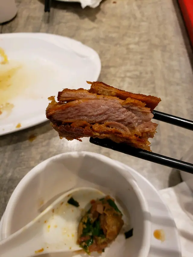 餐廳有三間分店,其中大角咀更入圍成熱店,而荃灣分店評價則最多,雖然當中不乏負評,但我地仍然決定一試。餐廳分時段入座,我揀左18:00,另外,餐廳限時90分鐘,即使如此,當晚仍然有大排捧場客;自己唔好彩,被安排到壞冷氣嘅位置,冷氣直吹,而且好大風好凍,附近幾枱客人要求熄細都熄唔到,唯有自己食完拿拿臨走人。😔半隻燒鴨 $168人齊後,職員就會送上枱。價錢包括潤皮、青瓜、京蔥、甜醬。 建議大家拿拿臨食左佢, 因為潤皮無蓋冚住,濕氣走得好快而變乾變硬😵 燒鴨皮仲脆,肉質亦唔鞋,潤皮包住嚟食,味道正正常常。不過,如果單食嘅話,就會食得出少少鴨騷味,所以唔建議單食。肉三鮮 $50(十隻)自己係餃子愛好者,所以點左個韭菜、豬肉、蝦仁做餡嘅肉三鮮餃子。餃皮係北方做法,皮厚帶點韌性,內餡有肉汁、唔油膩、韭菜好香。京燒羊肉 $138見到唔少人推介呢個羊肉,而且第一次見呢個菜式,當然要試。羊肉入口比聞落羶,但可以接受;羊肉唔會好肥,算係啖啖肉;肉質幾淋,不過我唔中意佢個調味料味。農家炒飯 $76亦係一個多人推介嘅炒飯,材料有白烚三色豆、無蝦味嘅蝦仁、完全唔襯嘅蕃茄粒、爽爽地嘅雲耳、無乜存在感嘅菜仔。個飯入口係豉油炒飯撈三色豆嘅味,完全無鑊氣,配料同米飯獨立存在。🤔唯一優點係個飯唔油,算係少油食品。🙉茶錢每位$5,無加一服務費,所以呢度無服務可言;只收現金。食物質素認真麻麻,飽肚但稱唔上好味;座位、環境亦麻麻(唯一坐窗邊望到海會好d)。荃灣有更多比佢好味嘅餐廳,價位相約嘅都有唔少選擇,完全唔明點解可以有咁多人讚好?! 🤔當晚唔止全院滿座,外面仲有好多人等位。😵…查看更多