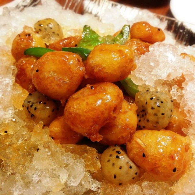 今天三代同堂慶祝母親節,阿姨提早在稻香訂了一圍菜另加兩隻長腳蟹。先來說說頭盤,挺特別的...冰鎮咕嚕肉配上火龍果,非常醒胃的,咕嚕肉的皮很鬆脆,甜酸度也因為冰鎮的緣故味道剛剛好。然後重頭戲當然是兩隻共重11斤的阿拉斯加長腳蟹,既新鮮又肥美,啖啖肉,吃到停不了手呢!接下來的傳統菜式,有別於其他稻香酒家分店,這裡都是即時煮成上菜的,所以水準一直保持很好,美中不足是樓面人手不夠,所以每碟菜相隔的上菜時間比較耐,可能也是因為母親節的關係吧!今天座無虛席!最後還有美味的千層糕和壽包作結,滿足!祝各位母親節快樂!