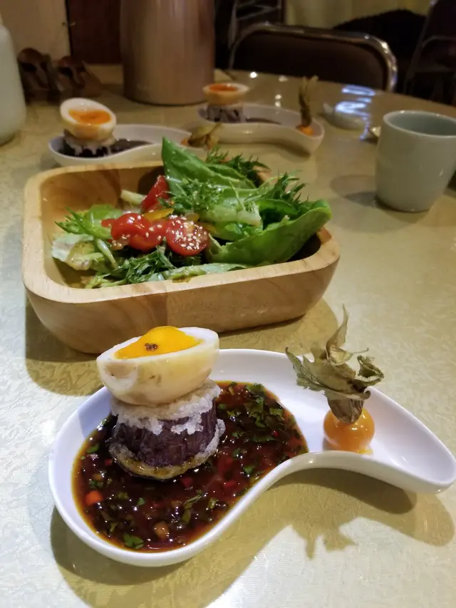 訂咗$499 per head慶祝朋友生日 第一印象店員好nice 位置燈光昏暗 冷氣唔太夠 我哋全程自己開風扇仔頭盤最出色 所以俾咗個假希望🥺本地米耕沙律菜伴芝麻醬✅ 鍾意芝麻醬係重麻醬味 唔會好漏京滬味香伴海蜇頭 雙色墨魚仔 ✅茄燒流心蛋伴黑魚子醬配厚切茄子✅原盅燉意大利牛肝菌豬肉雞腳甘筍湯☑️ 好在熱辣辣 但卻冇任何一個味道突出溫室南瓜北海道特級帶子🤮離譜no. 1 南瓜原來只係一個裝飾 所謂北海道特級帶子 都係得一粒放喺面頭 南瓜入面將啲哈密瓜同青瓜撈埋一啲怪味醬 味道極奇怪金黃沙獻澳洲大虎蝦✅焗薯蓉鋪底夠香 士多啤梨黑豚肉排骨🤮 離譜no. 2 我哋食落口嗰下簡直感到可怕 佢係甜品嗰隻廉價士多啤梨醬就咁唧落去 極多碎骨頭 米通同佢都離奇地唔夾魚湯浸黑松菌日本百合配時令鮮蔬🤮 離譜no. 3 嗰啲放到我面前已經覺得好腥 菠菜正常 但個湯我冇辦法接受卜卜脆米海中鮮豚粒炒飯✅ 有少少脆米係幾好食嘅 此外就係一個正常嘅炒飯時令甜品☑️頹到唔想再試 木瓜雪耳糖水 朋友話okay餐廳冇壽桃亦都冇特別慶祝 都free咗四支可樂俾我哋嘅…查看更多