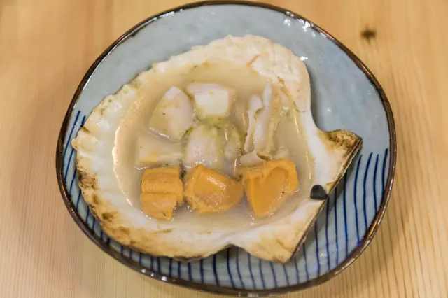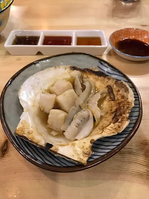 很多餐廳為了吸引食客,都會諗唔同的噱頭,而今次是和手有關的。朋友約我到這裡吃飯,估計應該是因為尖沙咀,夠方便吧。餐廳主打浜燒和日式食物,為著浜燒,四周的抽氣也做得不錯。點了食物後,朋友已經立即告知店員玩遊戲,這時我才如夢初醒。讚好面書專頁後,店員就會拿來一盤蝦,一手可以拿到多少,就送你多少。終於知道朋友約我來這裡的目的,就是貪我的手夠大。目測自己大約也能拿到四五隻蝦,而結果遠超我想像,竟然是九隻,是我的手太強(大)了吧。而且提供的蝦絕非一般貨式,而是有一定份量的赤海老。贏得九隻赤海老,可以選擇浜燒或是刺身。既然有九隻咁多,就一半浜燒一半刺身。燒赤海老肉質較結實,赤海老刺身則是爽彈的口感,各有各的好。人氣蟹味噌甲羅燒 $68蟹蓋上有大量蟹膏,蟹肉,蟹子,還有鵪鶉蛋,店員即場開爐加熱,確保新鮮的程度。完成後,可以放在脆口的餅乾上吃,十分惹味。北海道帆立貝 $78帆立貝好巨型,成個手板咁大。先在爐上加熱,令帆立貝張開。拿出內藏後,在加入清酒繼續燒。燒後的帆立貝爽口鮮甜又多肉。脆炸雞軟骨 $48香脆程度溫和而不過火,炸粉適量,細細粒,一口過。加上檸檬後酸酸地夠開胃。岩鹽枝豆 $22這個十分抵食,份量多,感覺食極都有。即叫即焗,入口還是熱辣辣,加上枝豆有充足的鹽粒,咸香味十足。當季壽司盛 $228壽司盛感覺都幾豐富,海膽,飛魚子,吞拿魚等多種壽司,份量不錯,是浜燒以外的好選擇。看到朋友在玩遊戲後的反應,我知道佢沒有揀錯人,今晚對我亦比平時好。…查看更多