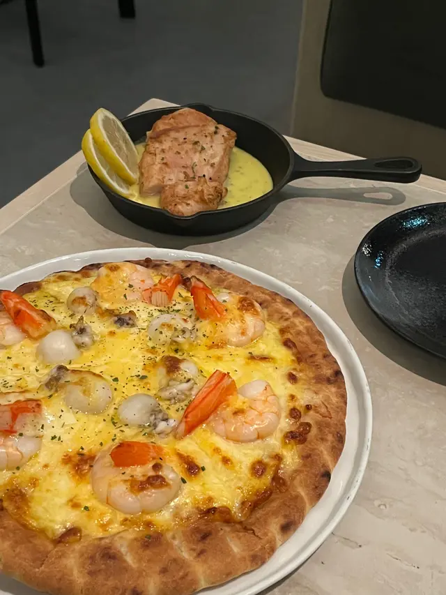 ⸝⸝⸝♡ ꔛ ꔛ ꔛ ꔛ ꔛ ꔛ ꔛ ꔛ ꔛ ʕ´•ᴥ•`ʔ ‧1️⃣ 檸檬奶油燒嫩雞胸($68) 🍋🐔呢個係將軍澳單車館期間限定😝見到限定就即order😊雞胸肉煎得外皮金黃酥脆內裡卻保持鮮嫩多汁🤤 淋上特製檸檬奶油醬汁😇酸酸甜甜完美中和雞肉油膩感😝清新爽口!😋偷偷話比你哋知😉剩咗既檸檬奶油醬汁可以加落碟意粉😋好好食!2️⃣ 白酒香蒜大蜆意大利粉($118)🧄🍝 八隻飽滿鮮甜既蜆🐚🌊 一上枱已經聞到勁香蒜蓉香😝意大利麵條彈牙🤨微辣既調味更加係畫龍點睛🌶️刺激著味蕾🥹🤤 食完超級滿足!🥰3️⃣ 千島海鮮薄餅 ($148 )🍕🦐餅底厚度介於薄批同厚批之間😉口感外脆內軟🥳非常有嚼勁!🤤 滿滿芝士🧀拉絲效果一流😜😍 千島醬酸甜可口🤨同海鮮鮮味完美搭配!😋 每一塊pizza上都鋪滿新鮮蝦仁🍤Q彈章魚仔🐙同鮮美蟹柳🦀用料十足😇誠意滿滿!💯 4️⃣ 京都春日($128) 🧇🍓四塊外脆內軟窩夫🧇可以自行淋上香甜士多啤梨醬🍓口感豐富☺️層次分明!😋 兩球Häagen-Dazs雪糕係冧酒提子🍇和焦糖脆餅口味🥹兩種口味都非常好吃!🤤 仲有滿滿新鮮草莓🍓酸酸甜甜😆非常清爽!🍓 💖 食完幸福感爆棚!🥰⸝⸝⸝♡ ꔛ ꔛ ꔛ ꔛ ꔛ ꔛ ꔛ ꔛ ꔛ ʕ´•ᴥ•`ʔ ‧˚ 🌟想知道更多美食🤪記得follow@mochicouple_hk啦😍🎉📸📍 將軍澳寶康路105-107號 香港單車館公園G53號舖🚇 港鐵坑口站B出口,步行約10分鐘🕒 Mon - Fri: 11:00-22:00 Sat - Sun: 08:30-22:00…查看更多