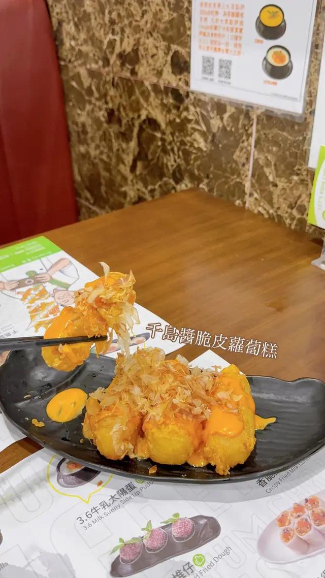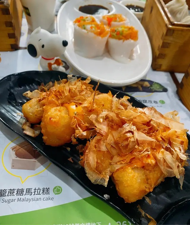 朋友剛從外國讀完書回來,所以晚餐我們來吃中式點心😝👉🏻千島醬脆皮蘿蔔糕 $33蘿蔔糕新鮮炸起,外脆內軟,配上千島醬,挺惹味的👍🏻👉🏻蒜蓉粉絲蒸墨魚仔 $38墨魚仔口感軟硬適中,不會過老,可惜蒜蓉不夠。👉🏻黑金流沙包 $36趁熱吃的時候挺流心,但是放了一會,天氣比較涼,凍了後麵包的質感頗硬,宜趁熱吃。👉🏻3.6牛乳太陽蛋 $26很普通的牛奶布甸,上面橙色的”蛋黃”,是有甜味的啫喱😂,沒有什麼特別。👉🏻醬皇蒸鳳爪 $25👉🏻陳村粉蒸排骨 $27👉🏻香菇燒賣 $32👉🏻得獎蝦餃之王 $36其他點心中規中矩啦。…查看更多