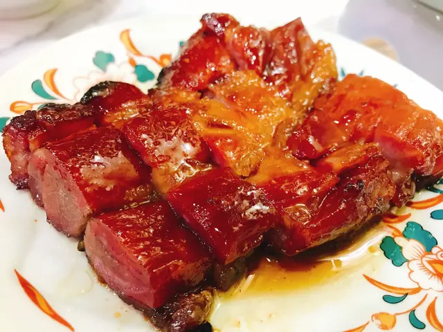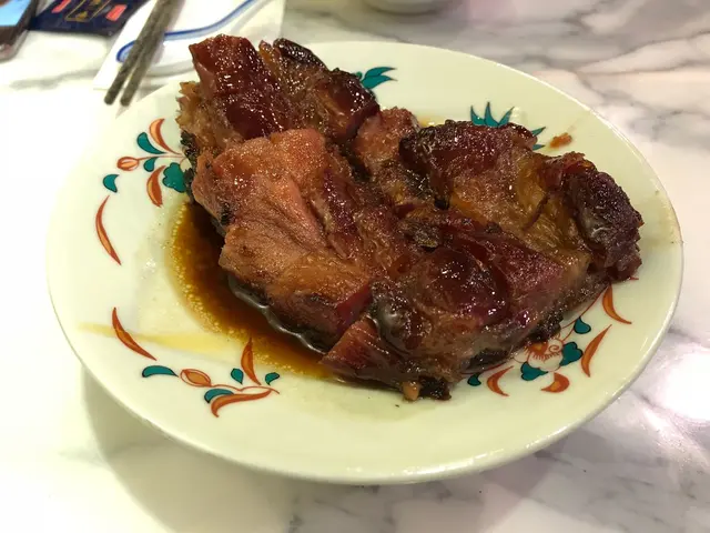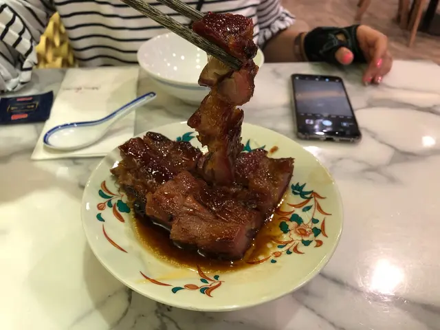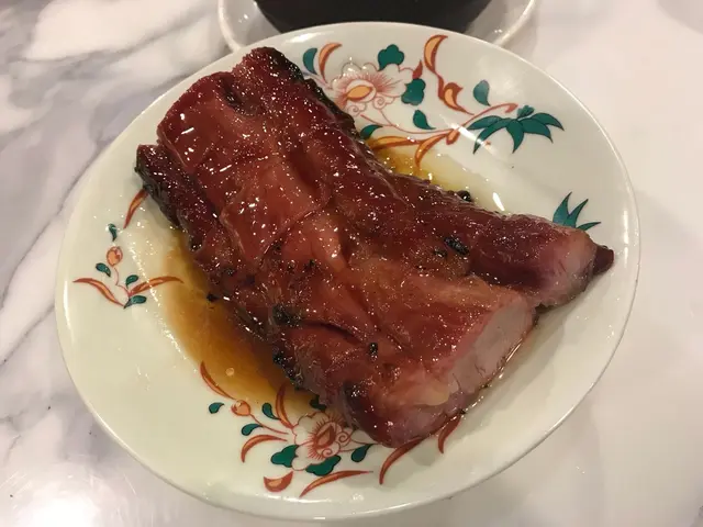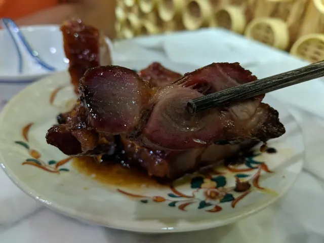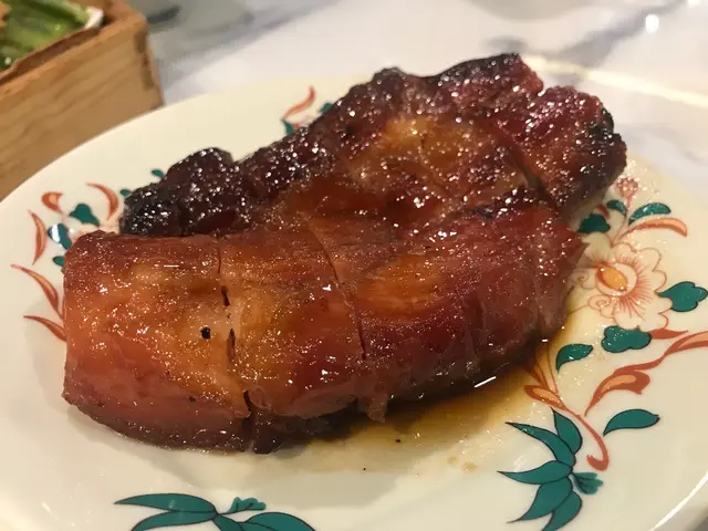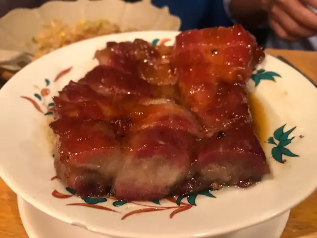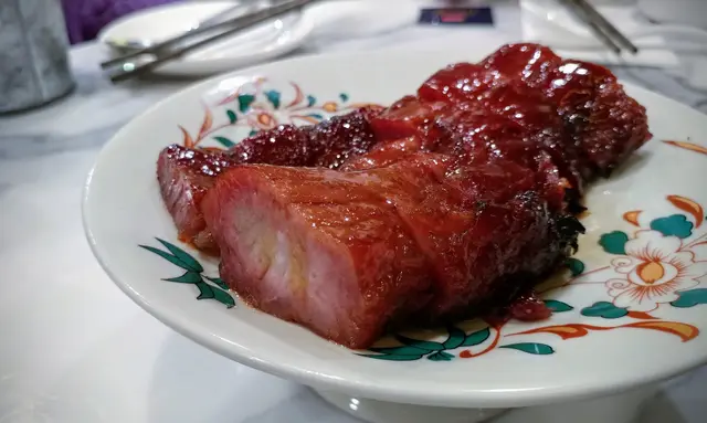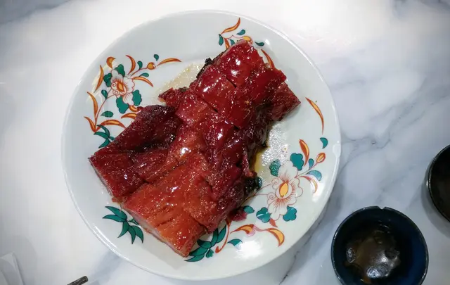 三點鐘到訪,都有些懷疑是否還有提供服務。當服務員告知仍有餐點時立即興奮地揀咗張四人枱坐底。等待上菜期間便觀察了餐廳的装飾,藍色與金色的主色調搭配起來也幾令人感到賞心悅目。厚切叉燒皇率先駕臨,果然“厚”切,是一般叉燒的两倍厚。叉燒睇落幾瘦,但入口唔會覺得干同柴,叉燒汁也調得恰到好處,既唔太甜也唔覺油膩。春卷炸得好脆,最後一條隔咗一個鐘之後時也與剛炸出來一樣波波脆。魚米之鄉係我至愛,魚肉拆骨後切粒炒飯,只保留頭尾和魚鰭炸過後洒上辣辣粉作伴碟。炒飯干身香口,魚肉粒粒不會散開。是全場最佳出品。
