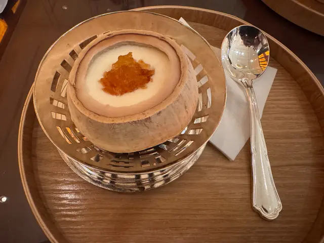 去咗幾次香格里拉,之前都賣哂椰皇,今次早去終於有,不過侍應問我有冇book位先知原來食糖水都可以😌book位,我答我walk-in,坐咗最邊嗰d位,唔係最舒服既大櫈。叫咗原個椰皇燉蛋白桃膠$78同擂沙湯丸$38,等咗5分鐘就有擂沙湯丸,一咬開就係黑芝麻流心餡,暖心🥰,甜度適中,湯丸煙韌,完美😍,平時我唔食黑芝麻湯圓都覺得皓皓食。反而等原個椰皇燉蛋白桃膠等咗皓耐,現場有live music,有小提琴🎻同鋼琴🎹演奏🎶時代曲,但等得唔耐煩攪到我冇乜心機,見到門口已排大隊。最後椰皇等咗25分鐘先到,但最少知係新鮮燉,比想像中細,但食落份量就都ok,蛋白夠滑,但冇乜椰皇味,圓頭匙皓難挖到椰皇肉食,皓辛苦😓,桃膠打卡靚但冇乜味…查看更多