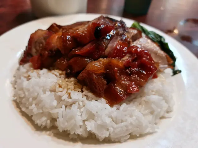 早排係銅鑼灣要搵地方快食一個晚餐,又唔想揀m記個啲,咁啱見到呢間燒味店就入左去。.雖然係銅鑼灣貴嘅地段,但係價錢都幾平民價,單/雙拼飯麵係同價,都係$47,幾抵食。呢到嘅叉燒出名,梗係要試下,我最後叫左叉燒燒鴨飯,我朋友叫左叉燒油雞河粉。整體黎講,佢地嘅燒味真係唔錯,而且幾大碟,餸同飯量都多。叉燒確實係唔錯,舊舊都半肥瘦,燒得幾香,咬落去又唔會好柴,幾好。燒鴨唔會好肥,鴨肉都多,唔會得啲骨,值得推薦俾大家。油雞幾嫩,味道唔會太咸,不過我覺得可以熟多少少。.下次要快食,我都會考慮再去…查看更多