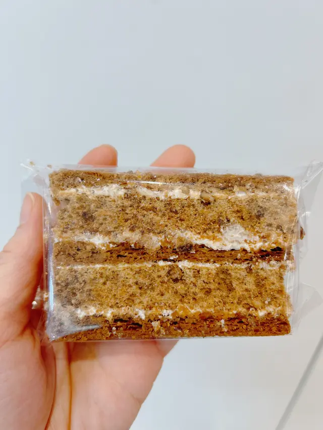 從同事口中得知此《常温》的古法拿破崙和蝴蝶酥美味又出名,於是趁有時間便到餅店一趟。買了特濃朱古力忌廉卷蛋、古法拿破崙、金磚和瑪德蓮。特濃朱古力忌廉卷蛋:外層特濃朱古力粉,朱古力卷蛋鬆軟又夠濕潤,內層香滑朱古力忌廉。一口接一口,不甜又鬆化的卷蛋真是好味道,吃完一整件也不覺得滯。極力推薦👍古法拿破崙:古法拿破崙是由三層的酥皮、合桃蛋白餅和牛油忌廉組成。層次分明細膩,非常整齊,口感豐富,且帶有牛油香氣。開心果金磚、紫薯QQ金磚和伯爵茶瑪德蓮:開心果和紫薯QQ金磚金磚顏色吸引,一款綠色另一款紫色。 金磚較甜,個人比較喜歡伯爵茶瑪德蓮,充滿濃郁伯爵茶香,又不會過甜。雖然常温甜點有點貴,但是物有所值。有時給自己一點歡樂,有時給家人和朋友一點歡樂,不妨買些甜點給自己或與家人朋友一同分享^^*看了一個視頻,表示常温在農曆新年前結業,不知是否屬實。…查看更多