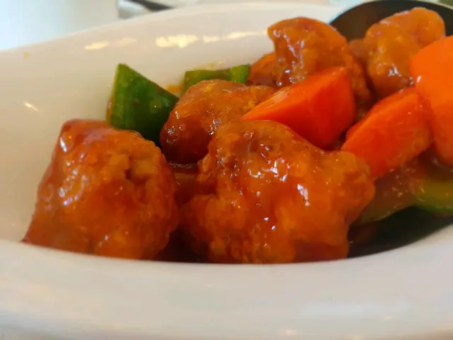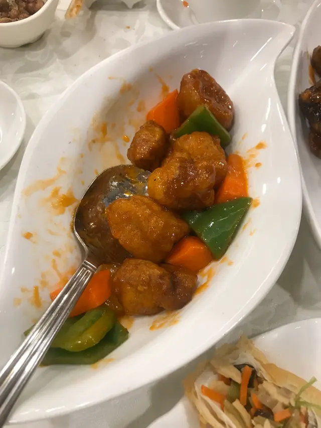 閒日早上 11點半左右入坐,時間尚早餐廳內只有3枱人,人少少清清靜靜,從餐廳內的落地玻璃遠望文化中心,維港海景舒服又爽!與友人二人行,點了“咕嚕肉”、“上海粗炒”、“素春卷”、“豆腐餃子”、“清炒菜苗”,咕嚕肉我最喜歡,口感外脆內軟不油膩,醬汁甜酸恰到好處,帶出咕嚕肉更鮮味,真要一讚