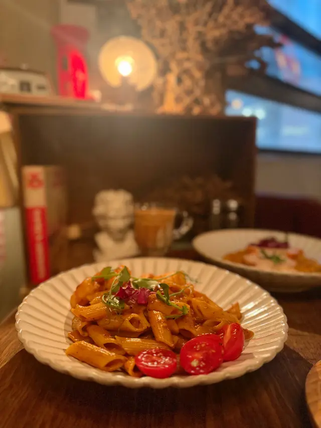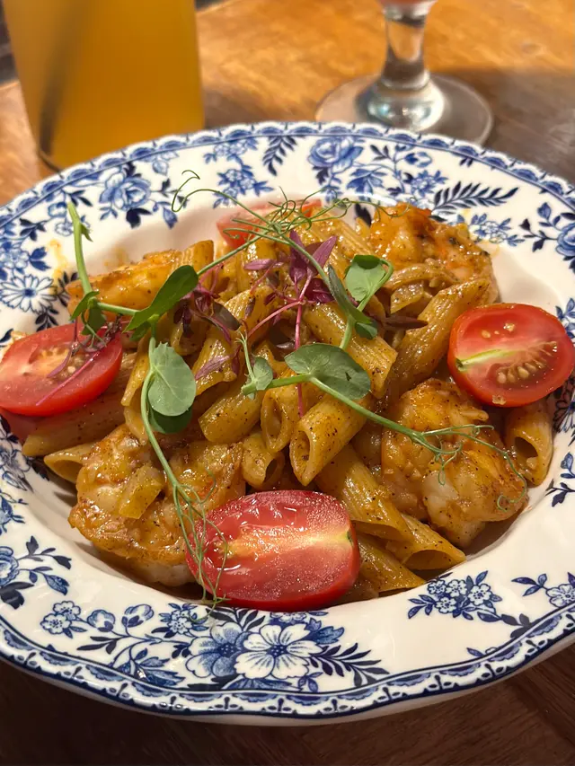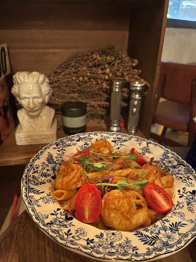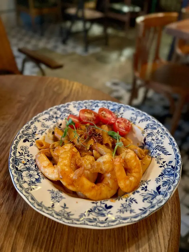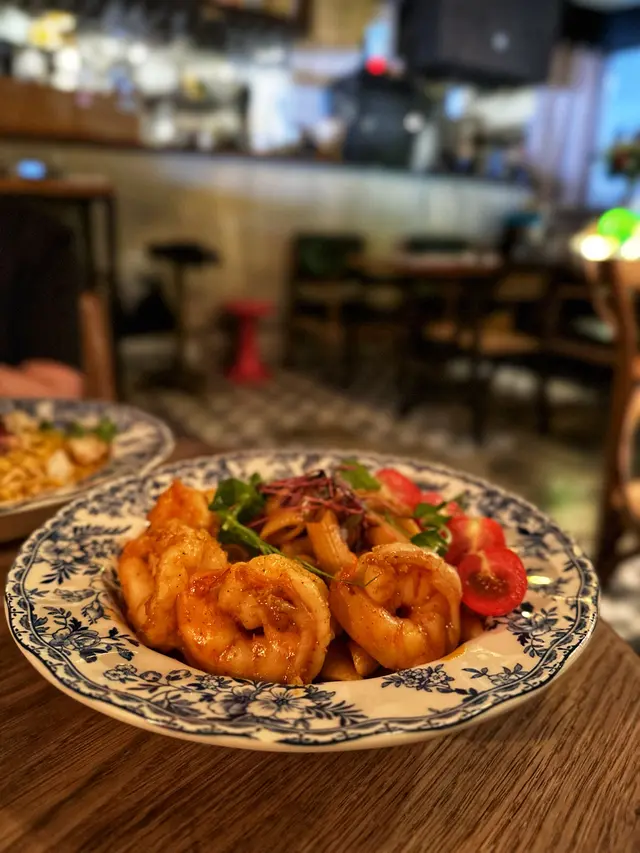 相信大家對呢間𝘾𝙖𝙛𝙚唔陌生🤭裝修設計走懷舊風非常有特色環境配搭大量擺設好有懷舊𝙛𝙚𝙚𝙡📺牆壁上有唔少趣怪的經典卡通塗鴉🎨而每個角落都非常適合打卡拍照📸餐廳主打西式𝙛𝙪𝙨𝙞𝙤𝙣菜🍽️喇沙龍蝦汁配大蝦長通粉🦐🍝4隻肥美的大蝦🦐爽口彈牙,長通粉煙韌有咬口,配上喇沙龍蝦汁食落辣辣地🌶️,雖然喇沙味唔夠突出,但整體味道香辣惹味😋甜椒慢煮雞胸配南瓜意大利飯🐔🍛雞胸用慢煮方式烹調,令雞肉肉質嫩口唔會”鞋拾拾”,意大利飯加入南瓜一齊煮出來,口感綿密又濃稠,食到淡淡南瓜香味一口炸雞🍗炸雞🍗揀左韓式辣汁約有7件,外層炸得香脆,咬落每件炸雞肉質𝙟𝙪𝙞𝙘𝙮裡面有少少油脂,友人表示好鐘意食😂𝙋𝙚𝙖𝙘𝙝 1664 𝘽𝙡𝙖𝙣𝙘 𝘽𝙚𝙚𝙧 🍺用1664小麥酒做基底,混入蜜桃汁🍑,薄荷,接骨木花及青檸,入口飲到陣陣的桃味,酒精唔算高容易入口,清新又解渴豆腐花焙茶拿鐵🍵見到呢杯飲品覺得好特別,充滿好奇叫來試,飲到好濃郁的焙茶,但我與友人一致好奇唔見豆腐花的蹤影🫣,點知飲到尾發現底部有滑溜的豆腐花增加口感🥰,打破左心中疑惑😳😂…查看更多