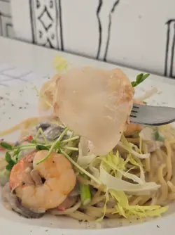 灣仔春園街的ULURU,長期人氣高企,想食?唔預約真係「冇你份」㗎!😉 黑白主題裝潢,一踏入去,嘩!以為自己去了愛麗絲夢遊仙境,不過今次唔係搵兔子,而係嚟試佢哋新推出的港式情懷晚餐! 主菜梗係要試兩款新嘢啦:大澳蝦醬魷魚筒鮮鳳尾蝦炒意粉,未食已經聞到個蝦醬味,勁香!魷魚彈牙,蝦又夠鮮,意粉索晒啲蝦醬味,簡直係「蝦醬控」嘅福音! 另一道香煎石斑扒配珠江橋牌豆豉鯪魚炒意粉,呢個配搭真係估佢唔到!石斑魚煎到金黃香脆,魚肉嫩滑,配埋充滿童年回憶嘅豆豉鯪魚炒意粉,鹹香惹味,兩款主菜都好有港式風味,而且充滿「搞搞震」嘅創意! 講到前菜,一定要試埋佢哋嘅全港獨創1/4 脆脆豬!揀咗芒果味,外皮脆卜卜,豬肉又嫩又juicy,記得趁熱食,唔係就走味㗎啦! 甜品就梗係要試埋個二次元立體夢幻蛋糕啦!有三款味道揀,我兩日前就已經預訂咗粉紅色嘅玫瑰荔枝+紅桑子口味。個蛋糕靚到唔捨得食,味道都唔錯,玫瑰同荔枝嘅香味好夾,紅桑子嘅酸甜味又啱啱好。 總體嚟講,ULURU真係一間充滿創意嘅餐廳,食物同環境都令人印象深刻。新推出的港式情懷晚餐,將傳統港式風味玩出新花樣,絕對值得一試!記得,記得,一定要提前預約啊!唔係嘅話,就唯有「望門輕嘆」啦!…查看更多