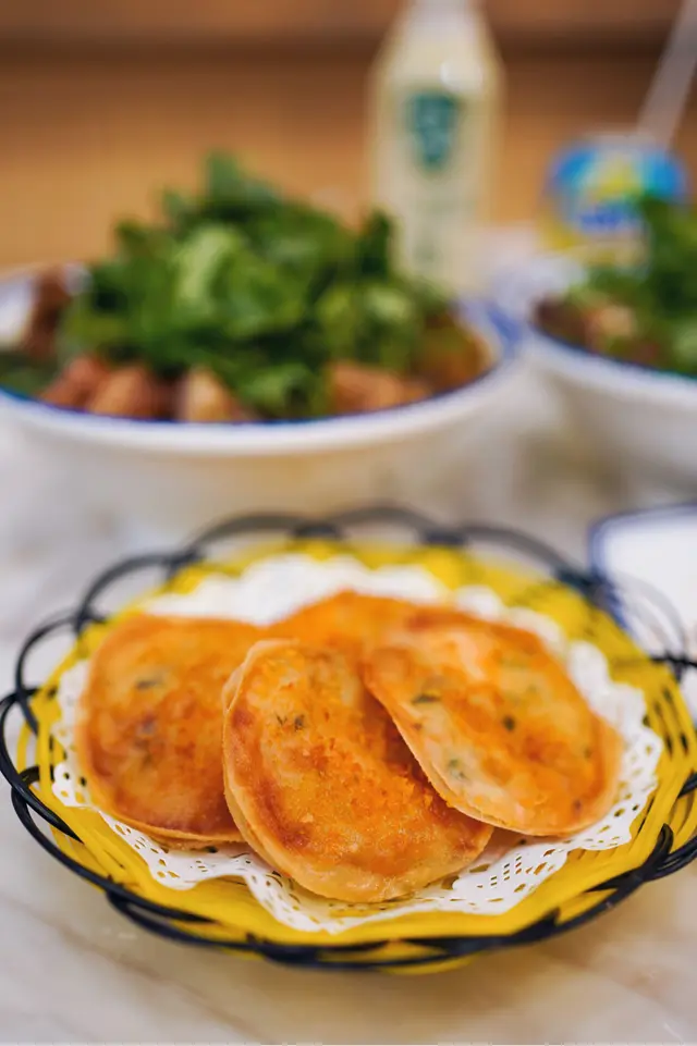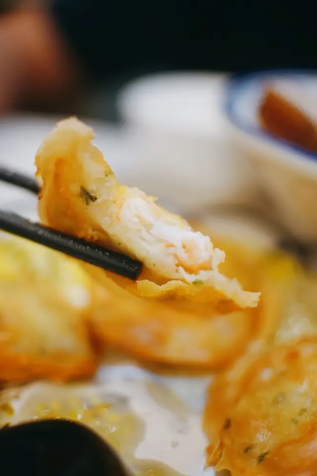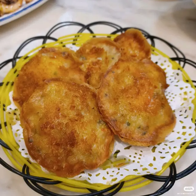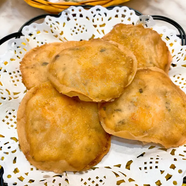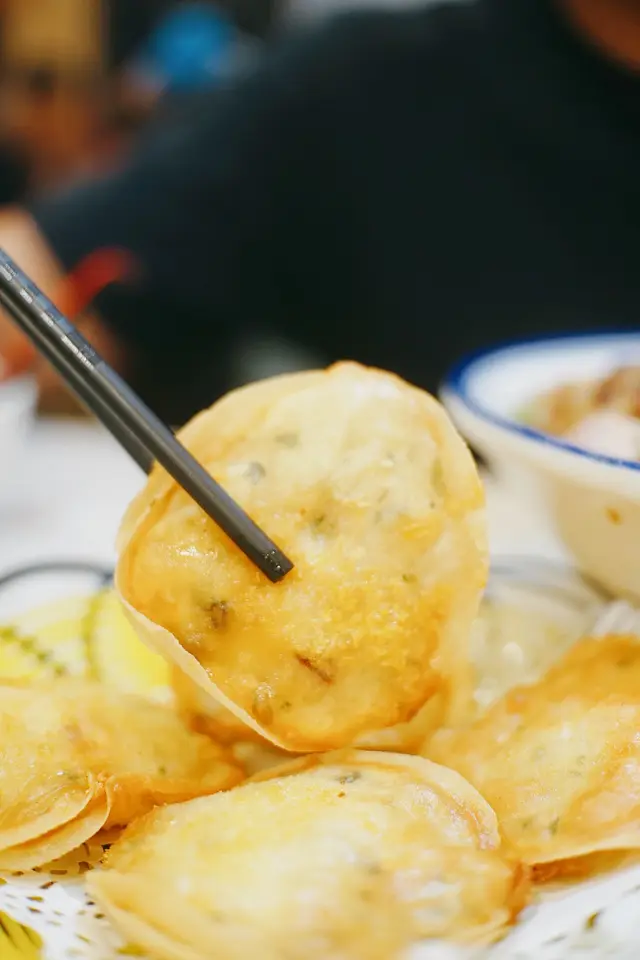 。太陽餅(HKD$43)係華記必食推介,見到好多檯都有點,佢用新鮮蝦膠,即叫即整,上到檯熱辣辣,外表金黃酥脆,咬入有墨魚粒,同睇到原隻蝦仁,配埋佢泰式辣醬,好惹味
