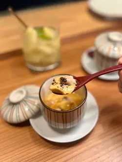 今晚同朋友去咗一間日本過江龍燒鳥專門店,主打傳統明火炭爐燒製作每一串燒,Omakase形式座位。環境以日式簡約的木質風格為主,氣氛特別輕鬆。主廚精選推介套餐雞高湯茶碗蒸蒸蛋滑嫩,濃濃的雞高湯完全滲入其中,加左黑松露與鮮甜蟹肉點綴,提升整體的精緻層次。前菜盛合+料理擺盤精緻如藝術品,慢煮牛肩軟嫩;茄子微微焦香,搭配甜酸蕃茄,味道清新。三文魚和吞拿魚刺身鮮嫩滑口。串燒雞頸:燒鳥中少見部位,肉質格外緊實有嚼勁,油脂帶著濃郁焦香。黑薩摩雞柳:肉質結實細膩,肉質嫩滑。雞心:燒得恰到好處,有Q彈咬感。免治雞肉:口感滑嫩多汁。雞尾:外層油脂脆香,口感軟嫩。時令蔬菜:小青椒烤至微焦,肉身依然保留鮮嫩口感,+度低但帶著自然蔬菜甜味照燒鵝肝:入口融化,如奶油般綿密感。黑薩摩雞腿:肉質更結實細膩,口感嫩滑。塚田特製雞白湯拉麵雞白湯精華濃,拉麵吸滿湯汁,暖胃又飽滿。甜品夾餡雪糕:開心果雪糕堅果香味,搭配脆口嘅最中餅,充滿冰涼細滑感。自家製布甸配抹茶蕨餅:布甸滑嫩如絲,口感細膩,抹茶蕨餅口感煙韌。飲品Frozen Lemon Soda:清新解膩嘅特製飲品,冰沙中帶著檸檬的香氣。Frozen Shochu Cocktail (Kiwi):清爽奇異果味混合燒酎,酸甜適中。…查看更多