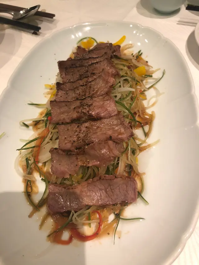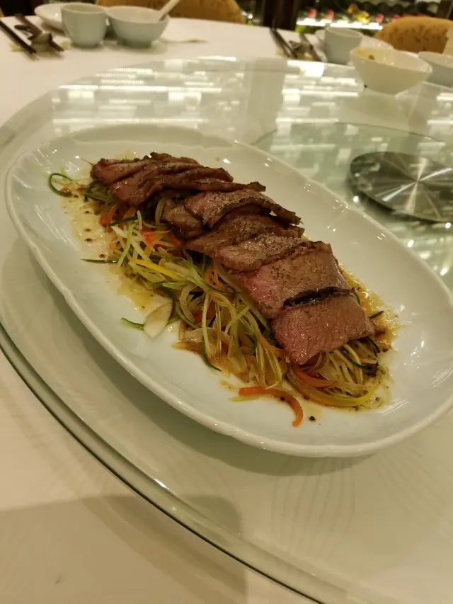 菜式有炙燒松露黑豚肉$198、 芥末脆香蝦球$168、 加拿大龍蝦肉炒鮮奶$198、 安格斯半熟牛肉沙律$248、 黑蒜蒜泥蒸勝瓜$108、 福建炒麵線$138。
