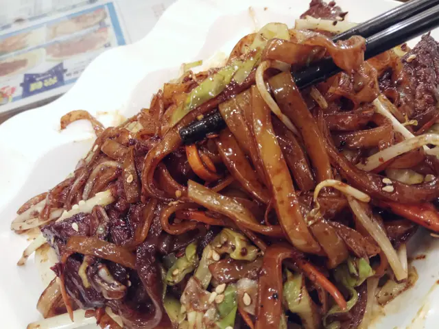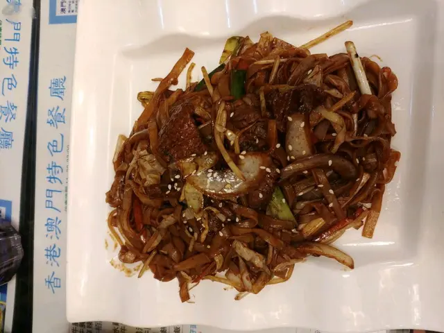 T06 必食獲獎川醬干炒牛河($49)即炒,夠鑊氣,香味十足。份量以下午茶來說尚算合理。牛肉大約有四至五片,唔韌有咬口但無咩肉味。河粉滑,炒得夠乾身,而且條條都上哂色。川醬辣味十足,十分惹味。整體不錯,不愧稱之為「必食獲獎」。T04 法式紅酒牛腩飯($49)呢個十分失望,餐廳話哂以牛腩作賣點,但係呢碗紅酒牛腩真係唔得。一上枱見到啲牛腩咁瘦,立即心知不妙,試食一件,肉質又韌又柴,而且又無肉味,同煲湯瘦肉沒有分別。前後有四件,件件都一樣咁差。另外碗白飯都不是太好,偏濕,軟淋淋。下午茶包熱飲一杯(凍飲+$3),如果兩款都係同價錢,絕對食牛河好過牛腩飯。…查看更多