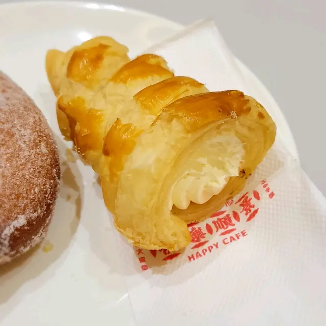 以前間唔中都會去灣仔嘅快樂餅店食忌廉筒同沙翁,自從結業後都心思思想食,好彩快樂餅店聯同同樣係灣仔老字號嘅順景茶餐廳係銅鑼灣重新開店❤️新店位於銅鑼灣蘭芳道,週末同爸爸2人落街食個早餐重溫當年味道。快樂忌廉筒 $15必食!快樂忌廉筒係每日人手製作❤️外層酥皮入口即化,香脆鬆化亦帶有空氣感,而忌廉內餡主要由忌廉、牛油和糖膠混合而成,口感幼滑香甜🤩紅豆沙翁 $13面頭鋪上砂糖,外表酥脆,內裡鬆軟充滿蛋香,再加上煮得綿滑的紅豆餡,甜而不膩👍雞蛋沙律香脆牛角包 $38配熱奶茶牛角包外層酥脆,內層柔軟,而且仲充滿牛油香味🧈再加上豐富的碎蛋沙律餡料,賣相和味道同樣吸引。順景的熱奶茶依然出色,茶醇厚而味道濃,同時不失奶香和滑☕️新鮮蕃茄濃湯午餐肉粒通粉 $38配煎雙蛋 及 脆皮菠蘿包 及 熱檸水番茄湯盡是茄蓉,帶微微濃稠,酸甜味道適中,而午餐肉粒煎得好香脆唔算好油,配搭通粉一齊食,正呀!脆皮菠蘿包的表皮酥脆、呈現金黃色,凹凸的脆皮不僅十分酥香可口,麵包新鮮軟熟,味道香甜但不膩。…查看更多