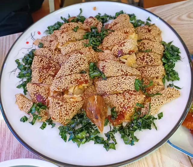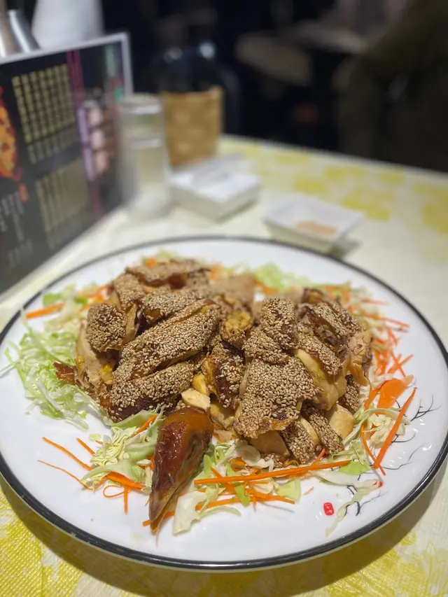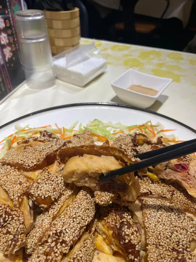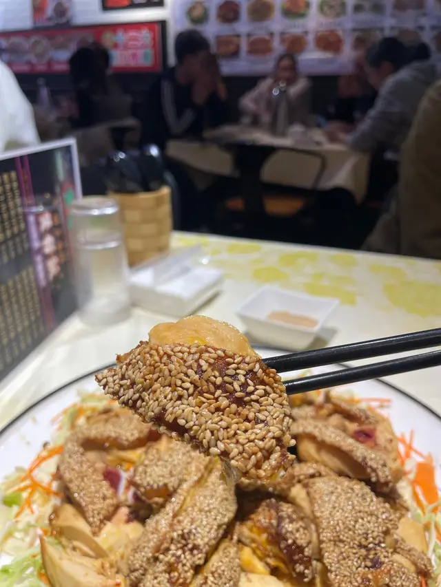 【懷舊芝麻雞】外皮金黃酥脆,芝麻香氣濃郁,雞肉鮮嫩多汁,咬下去每一口都充滿層次感,唯獨調味稍微偏淡,可再提升鹹香。