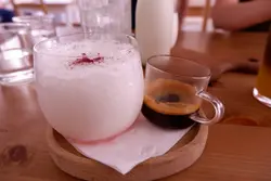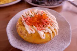 和朋友在創興廣場逛完展覽後搵晚飯食,在朋友帶路下,來到了Grind Size這間cafe。店舖分兩層,樓下有些吧枱位,而樓上則設有部分梳化位及地墊座位,樓上的格局令人感覺較為悠閑。點了幾份主食與一份小食和朋友分享,香煎牛油虎蝦手工蝦汁手工扁麵,份量不多。手工扁麵幾有咬口,蝦汁味道都算香濃。慢煮原條八爪魚🐙墨汁香辣意粉,八爪魚觸手好大件,卻又煮得夠軟稔,完全不會韌!墨汁滿滿的沾勻每一條意粉,味道夠香,加上微微的辣,就更為惹味!黑毛豬叉燒卡邦尼手工幼麵,叉燒份量適中,以黑毛豬製成的叉燒,軟稔又帶點油脂香與肉香,略嫌卡邦尼醬汁味道不夠香。煙肉芝士薯泥夾心酸忌廉排包,排包的面層是滿滿的配料,又香又軟滑的薯泥,鋪上煎得微脆的煙肉,加上芝士及酸忌廉,已經夠滋味。最面層還有兩隻太陽蛋,蛋汁配上豐富配料的麵包,令人滿足!明太子蟹肉西班牙蛋餅,蛋餅的賣相不錯,面層澆上沙律醬,還灑上大量的蟹籽與櫻花蝦。一切開蛋餅,裏面有些蟹肉,而且帶有蛋汁。雖然不太嚐到明太子獨有的鹹香味,但這份蛋餅的味道都很好!點了兩款甜品,Tiramisu,竟然提供1 shot espresso讓食客自己倒於甜品上。咖啡酒香濃而不苦,ladyfingers吸滿咖啡,mascarpone的淡淡奶香,並灑上可可粉,是很好吃的一份Tiramisu。不是飲品.凍檸茶,而是紅茶味道的心太軟,配上青檸雪葩。切開心太軟,流出來的不是朱古力漿,是紅茶漿,配上清新的檸味雪葩,令整體形成檸檬茶的感覺。Grind Size主打賣啡,有一位朋友飲Orange Coffee Tonic,嚐到咖啡香之餘還帶微微清新橙香。Iced Rose Latte,一杯凍的玫瑰🌹牛奶,搭配咖啡,也是讓食客自行傾注。醇香的咖啡帶有玫瑰花香,口感順滑。Iced Matcha Milk,提供一樽凍鮮奶,還有茶刷讓人自己泡抹茶,甜度也是由食客按口味調整,有得飲之餘又有得玩。紅棗蘋果茶,兩者的味道平衡,帶蘋果的淡淡香甜。不論主食、甜品或飲品,整體的味道不錯,只是價格略貴。不過這一頓晚飯充滿玩味,所以都值得試試的!…Read More