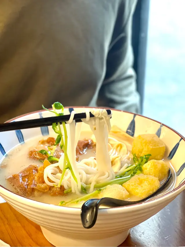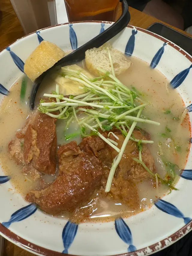 又一間新蒲崗名店,大約6點半去到已經好多人1-2人堂食要搭枱,食完嘅出面排緊長龍,想食嘅朋友記住預早啲去~🌩️ 慢煮豬軟骨米線 $52 🤍 4/5 叫咗BB辣,辣度温和但夠惹味。第一次見到有通心米線可以揀,食落通心嘅感覺但唔係好突出,有啲似食緊幼身烏冬幾特別🤣配料嚟講都好足料,豬軟骨大大嚿肥瘦均勻,煮到好腍好出色🌟仲揀咗魚腐同蘿蔔,蘿蔔吸晒啲湯汁好入味👍🏻魚腐係比較厚實似魚丸嗰種,個人偏好嗰種好有空氣感似豆卜嘅,所以就見仁見智。🌩️ 香茅豬頸肉米線 $57 🤍 4/5 選擇左招牌豬骨湯同炸醬芝士丸,湯底十分之濃郁,豬頸肉滿滿焦香,亦都水準之上🥰 芝士丸有少少芥末,層次豐富。🌩️ 自家製手作蝦多士 $26 🤍5/5大推呢個蝦多士‼️ 得兩件但係好足料,麵包炸到金黃酥脆,入邊大蝦鮮甜彈牙🦐回味無窮😍🌩️ 八味豆腐 $28 🤍 4.5/5 香脆軟滑,比起平時其他茶樓食既更加香口,而且份量充足,推介之一🌟🌩️ 特色檸益(跟餐+$15) 🤍 3/5益力多加檸檬嘅配搭,不過不失。…查看更多