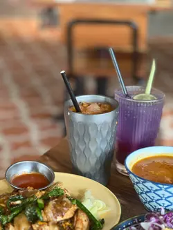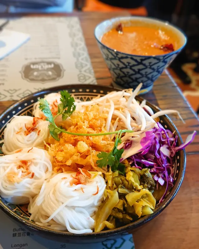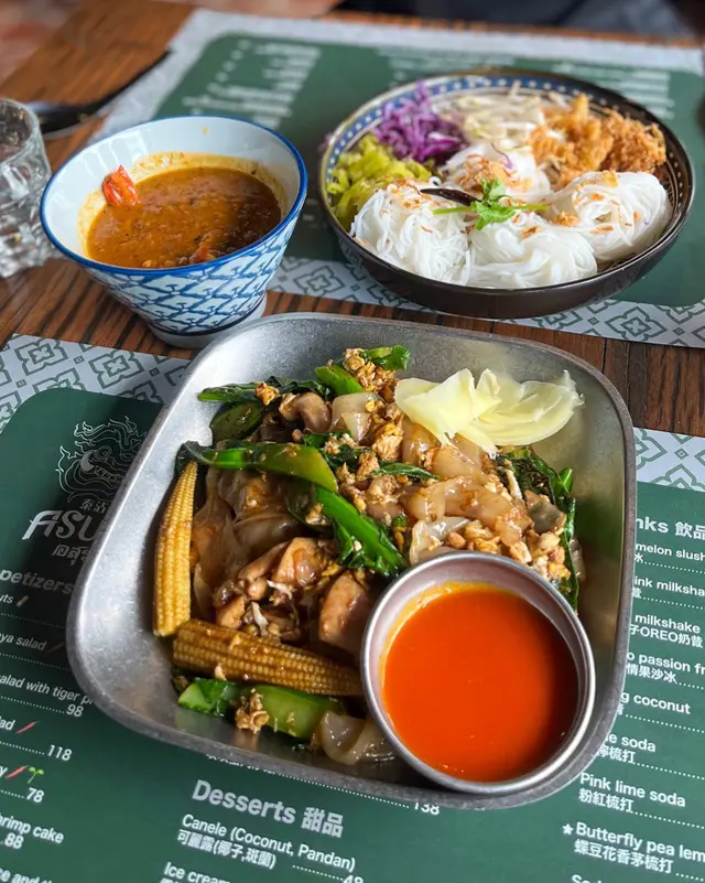 而家泰國咁危險都唔敢去 但又有啲掛住泰國菜🥺見屋企附近有間泰沾麵 咁岩又未試過🇹🇭難得週末得閒又無約就帶屋企人食個泰式Lunch❣️雞肉鑊氣炒河 $98同個名一樣食落都感受到夠鑊氣🔥正正夠鑊氣味道食落啖啖香濃炒河口感勁正🥰係有煙韌嘅感覺❣️招牌泰式沾麵 $108日式沾麵就試過 泰式就真係第一次見😂😂配上紅/青咖哩 而麵條部分選用素麵素麵可以令味道更加入味😙只需點少量咖哩已經好出仲有四大撮 好岩朋友們分黎食👫🏻❣️即燒豬頸肉 $88份量其實都多多地 一個人食都飽肚燒得勁香 肥瘦又均勻🐷咬口唔會韌 又唔會太過薄身❣️飛天炒通菜 $78之前係泰國食左啲勁辣炒通菜嚇怕左 呢到可以話係大家接受到嘅辣度🌶️岩曬啲唔食得辣 但又想食炒通菜嘅朋友仔通菜鮮嫩爽脆🌱夠惹味❣️泰式奶茶 $38❣️蝶豆花香茅梳打 $42本來無諗過試呢個梳打 其實係店員推薦🙈飲落帶點酸 同時帶點香茅味😋的確係開胃佢地又真係無介紹錯!!!…查看更多