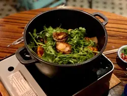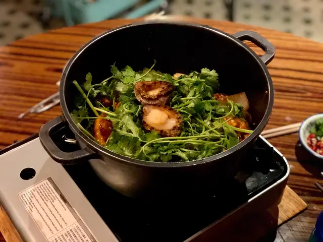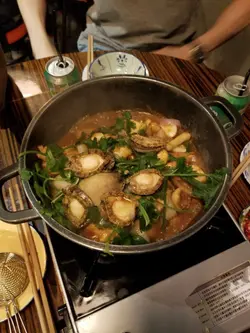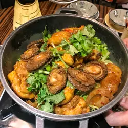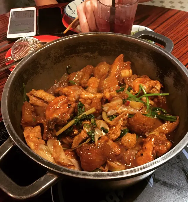 朋友見這裡裝修有特色,故意訂了座來嘗嘗。餐廳走懷舊風,都是老香港的物件和模樣。也因為訂座,所以能吃到招牌鮑魚麻辣雞煲。鮑魚按人頭上,所以訂座要確實人數哦!麻辣倒沒什麼辣。至於火鍋,我們點了香茜皮蛋湯底,以為會有好像清湯一樣,怎知味道挺濃的。我個人不怕香茜的味道,所以這個湯底不難喝的。但有朋友表示湯底香茜太濃烈,所以還請考慮清楚才決定。否則應該吃不到太多。點了炸魚皮,但很碎,所以不建議。放下去根本夾不回來。火鍋最後會送上特色甜點。其實也是玩懷舊的,不過略嫌難合所有人口味,加上一大碗上,較難分配。總結:餐廳賣環境可以,食物則普遍。…查看更多