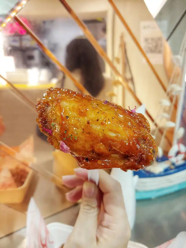 一直好想試雞翼山但都冇去過,有次去左某酒店staycation,package內包左6隻雞翼山避風塘雞翼,男友試完翻唔到轉頭,於是我代佢黎試其他三隻味😂我分別嗌左4隻鹹蛋黃,4隻南蠻他他同4隻文青風玫瑰,4隻既價錢都係$38,算係中上價錢,但就真係好食到食上癮,食到有次call外賣平台送去九龍塘🤫🤣佢全部雞翼都係即整,所以等候時間會耐少少,可以揀要叉或者手套,舖頭唔知係咪冇冷氣所以都幾熱下,但為左雞翼,值得既🤣先講鹹蛋黃,基本上係熱到揸唔住隻雞翼,但真係好香好入味,陣味似鹹蛋黃蝦碌👍而南蠻他他係偏甜既,但唔會太膩,中和左鹹蛋黃既鹹,感覺比較清新,他他醬係凍既,所以今次揸得住隻雞翼喇😆最後係文青風玫瑰,我本身麻麻地玫瑰,但呢款唔會太濃玫瑰味,而且都係偏甜,所以平時唔太中意玫瑰既都可以試下!不過店內衛生麻麻,吧台位置一直冇人抹枱,亦有小昆蟲出現,希望舖頭可以留意翻!…查看更多