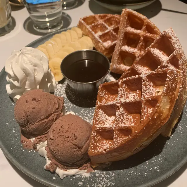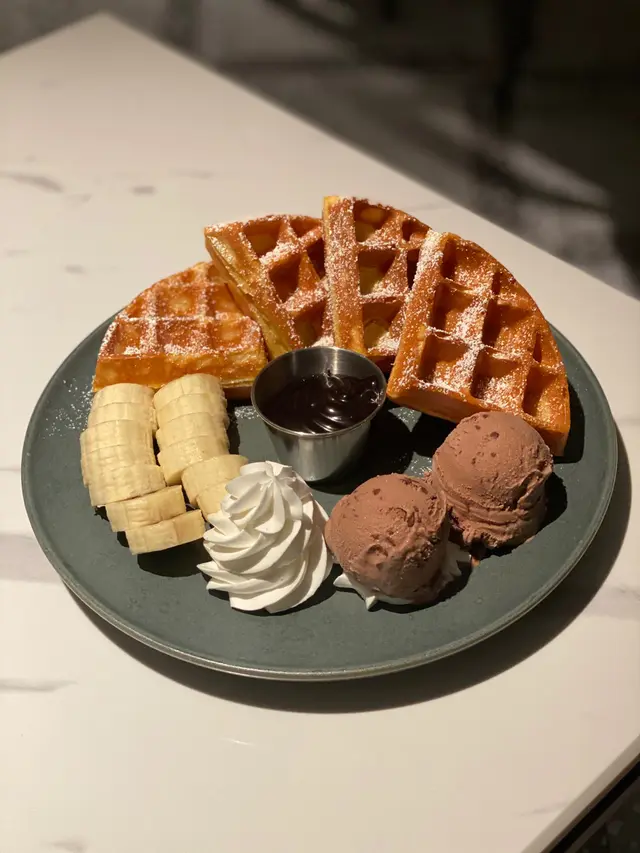 牧羊真係我經常回訪嘅餐廳 但一定一定要記得拎gulu 尤其係晏晝 唔係嘅話有排等🫢平時次次嚟食都必點佢地嘅pizza/pasta/小食拼盤 簡單啲嚟講姐係佢嘅鹹食都好高質😆但次次都食太飽嗌唔到甜品 今次終於嚟試下佢地嘅甜品💛❣️日落巴黎 ($108)窩夫主要有兩款 有香蕉同士多啤梨 我就揀咗香蕉waffle 配朱古力雪糕 我見佢地都可以轉雲呢拿雪糕嘅 大家可以根據自己喜好選擇 但我就覺得朱古力雪糕配上朱古力醬先係絕配😆呢個價錢有四大件 性價比會唔會太高🥺除咗有滿滿嘅朱古力醬 朱古力雪糕仲要有兩球 平時成日都會覺得啲雪糕唔夠嘅我都覺得呢個份量配上四塊waffle啱啱好🥺幾時都覺得waffle一定要有雪糕 冷熱交融真係好加分好好食🥺略嫌佢地嘅waffle有少少淋身 外皮唔夠香脆 但有雪糕同滿滿嘅朱古力醬已經好滿足(˶‾᷄ ⁻̫ ‾᷅˵) 香蕉份量都比想像中多 食完真係好飽🤰🏻但如果香蕉都有焦糖就好🫶🏻推薦指數:🌟🌟🌟🌟【𝐏𝐫𝐢𝐜𝐞: 4/5 𝐅𝐨𝐨𝐝: 4/5 𝐄𝐧𝐯𝐢𝐫𝐨𝐧𝐦𝐞𝐧𝐭: 4.5/5】ғᴏʟʟᴏᴡ ᴍʏ ɪɢ ☞ sɪᴜ4ᴍᴀɪ_ɪɴᴛʜᴇʜᴏᴜsᴇ #siu4mai_私心推薦 …查看更多