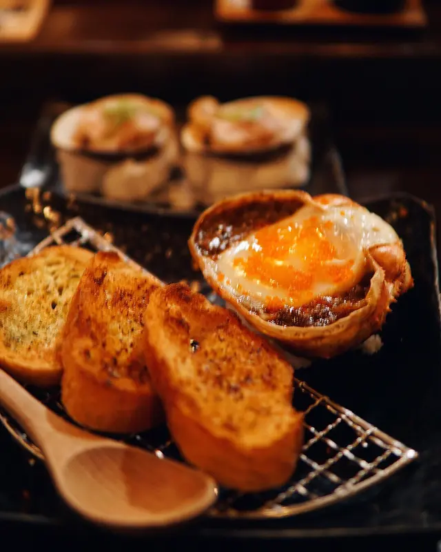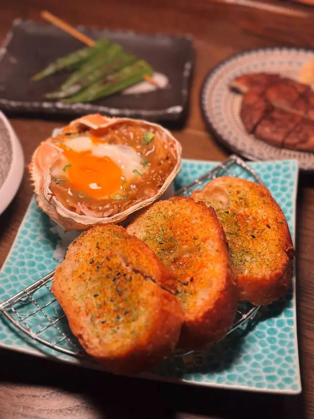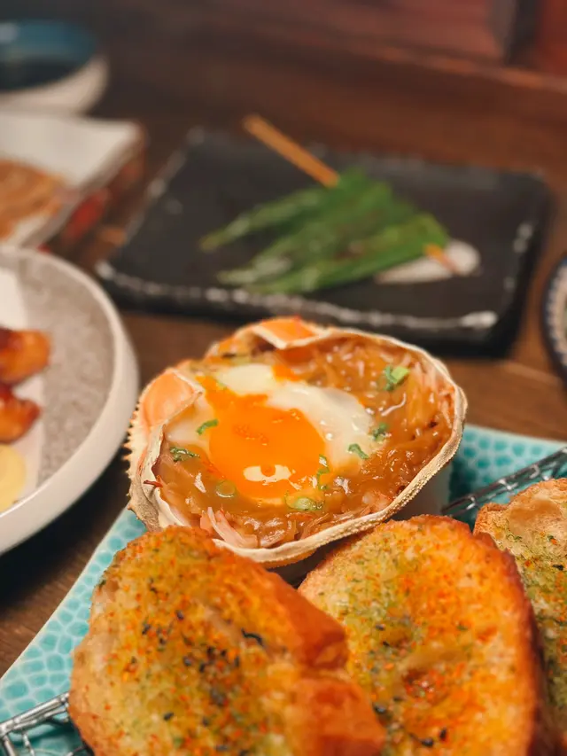 天后呢間居酒屋啱晒動漫迷去朝聖🎏見到佢個門口真係以為係賣玩具,裝修好復古日本風,入到黎周圍都擺咗figure同貼滿日式海報,好有特色,所以都幾受歡迎,全場full booking▪️月見蟹味噌甲羅燒$168 朋友指定要叫🤣入面有啲蟹膏、蟹肉絲同蛋,以味噌調味,撈勻搽上烘底麵包食,滿滿蟹膏,帶點鮮甜味,每一啖都非常滿足▪️汁燒牛腹身$188推薦必點!牛腹嫩得黎好入味,醬油汁偏甜,上面鋪滿蒜蓉,蘸wasabi一齊食,味道唔會膩▪️牛舌$88呢個價錢有咁嘅質素真係叫得過,燒得好靚,中間呈粉紅色,爽口有彈性▪️帆立貝刺身$58 /3切都算幾厚切,擺盤精緻,新鮮帶甜味▪️宮崎丸美豚肉紫蘇串$48有冇紫蘇葉同好🫰🏻一份有6件,豚肉卷住紫蘇葉,上面仲有梅子醬,味道酸甜,帶獨特香氣▪️九州香草餵飼雞翼$38雞翼有手掌咁大隻,金黃香脆帶點炭火香,又一必食!!▪️炸雞皮餃子$68雞皮餃子外層唔會炸到好脆,隻隻脹卜卜,好似真係食緊餃子咁▪️沙丁魚脆片$52超脆,每一口都有魚乾香味,佐酒一流▪️塩燒大啡菇$38、秋葵$35兩款都火侯都控制得幾好,唔會乾,仲幾juicy,大啡菇配薑蓉出奇地夾▪️香橙雪葩$48雪葩係晒個橙入面,食完咁多野食番佢涼浸浸,味道清爽▪️明太子/醬油燒飯團$48飯團配上醃蘿蔔,外脆內軟~😋▪️岩手雞皮串$36▪️Suntory Draft Beer $78/380ml▪️信州林檎$48…查看更多