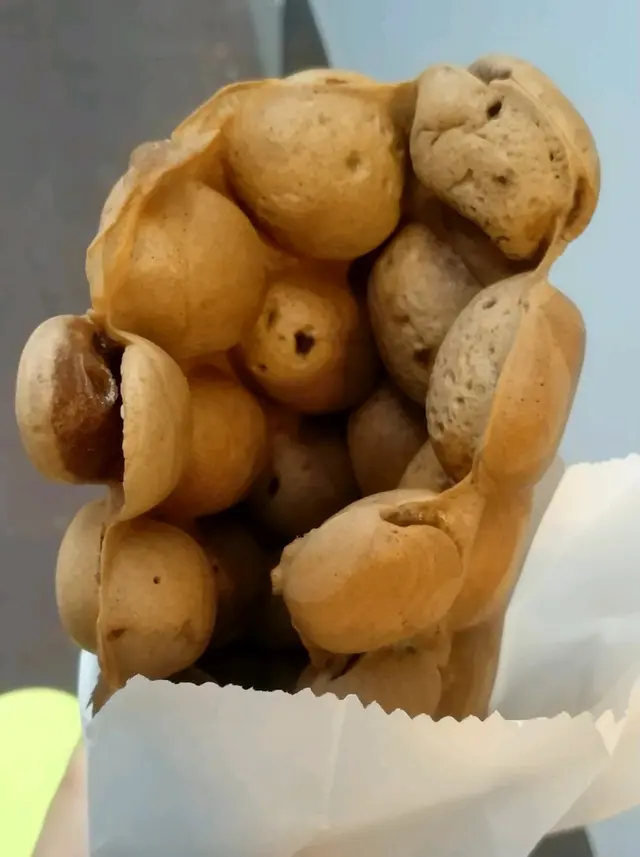 原味抺茶雞蛋仔 - 呢個唔係即整, 伯伯見我地一行幾人平賣畀我地, 雖說少咗香脆, 但原味蛋味香濃, 抺茶足料唔係得顏色, 有抺茶嘅回甘