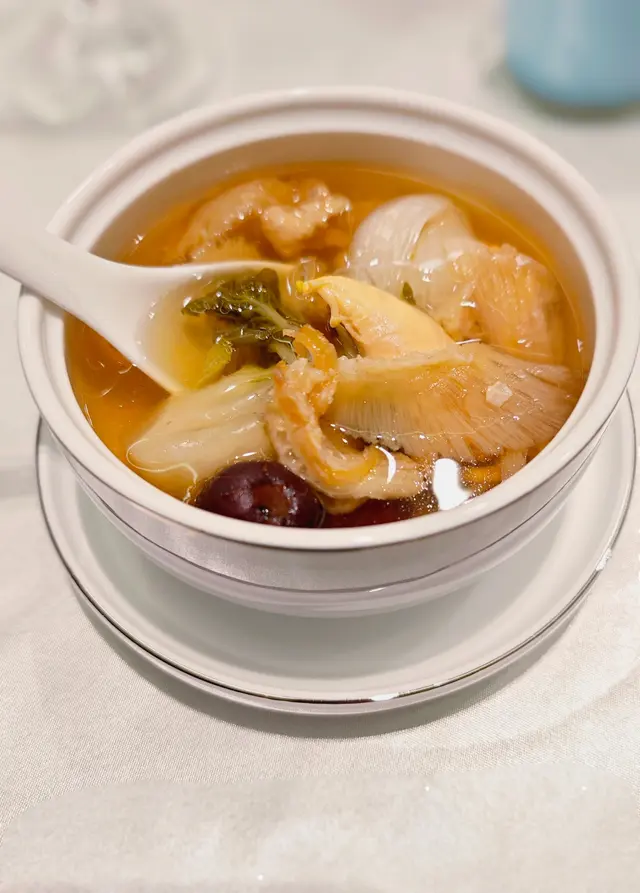 和朋友間中會去食私房菜,多數情況下是幾檯互不相識的客人同時在同一空間用餐,基本上環境和酒樓包廂房差不多。不過今次朋友發掘到一間幾特別的私房菜,大門有些神秘,沒有通透玻璃門亦不設門柄,正要尋找門鐘之濟,深啡色大門左右兩邊徐徐打開,原來職員正在門內等候,眼前只見一條連接6個房間的通道,房間以北京、廣東、廣西、福建、四川、湖南命名,最大的北京房可以容納大約四十人,每間房均設卡拉 OK 及隔音設備,寬敞的梳化、獨立洗手間,私隱度想當高三小蝶🥗去皮車厘茄有話梅汁最喜歡這款前菜,小蕃茄多汁無渣,吸滿酸酸甜甜的話梅汁,十分醒胃🥗咖哩角外皮炸得十分薄脆,乾爽不油膩,厚薄適中,不會太臃腫,易入口, 咖哩很香,夾雜少少肉碎,熱辣辣十分好食🥗涼拌萵筍萵筍絲爽脆清甜, 充滿麻油香味🥗棗皇竹笙鳳尾翅材料相當豐富, 鳳尾翅的份量也十分多,清燉後,所有精華傾注湯液中,熱辣辣,湯底清鮮,味道濃郁🥗鮑魚扣鵝掌北菇鮑魚肉厚有彈性,很輕易切開, 嫩滑,咬起來有豐富鮑汁溢出;鵝掌亦炆得非常軟腍入口,肉爽,含豐富膠質; 厚身北菇咬起來非常有質感, 濃鬱菇菌香加上鮑汁味,可謂桌上佳品🥗乾邑鵝肝煎帶子鵝肝外層煎得好靚,金黃香脆,內裏甘香軟熟 ; 略為煎過的刺身級帶子大大粒,肉嫩鮮甜 ,配當中含蒜粒的黑椒汁,香味馥鬱,去膩提鮮🥗XO碧綠醬炒雙蚌火喉十足,保留了蜜豆翠綠色澤, 脆口清鮮的味道、桂花蚌和珊瑚蚌鮮甜爽脆的口感;矜貴的xo醬另外用碟上,鮮香辛辣的味道, 配海鮮簡直一流🥗瑤柱翡翠炒絲苗絲苗米炒得乾身,粒粒分明,略帶少許油光,口感柔軟有嚼勁,配適量的瑤柱絲、菜粒、蛋絲、蔥花一同炒,甘香美味。🥗冰花鮮奶燉燕窩奶味香甜,質感軟滑,加上名貴燕窩 滋保養顏🥗環球時令水果冰涼清甜,生果切成一口一粒,吃起來方便也顯飯店細心之處寬敞的活動空間,居水準的美食,加上私隱度高,個人覺得頗適合商務聚餐,朋友或家人聚會…查看更多