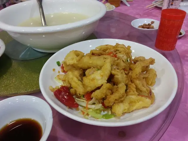 每次去流浮山食海鮮🦞都會幫襯明記海鮮,餐前有大大碗海鮮芥菜豆腐湯,湯好鮮味好多配料。嚟到流浮山必食一定係酥炸蠔😍蠔又大隻又肥美,酥炸口感鬆脆,沾少少椒鹽食,蠔鮮味更加突出。另一款必食推介,就係明記招牌炒飯,每次去食一定會叫呢碟炒飯,好好食,不但夠鑊氣,每粒飯的軟硬度適中,炒飯配料好足料,有大大隻鮮蝦、叉燒等,全家人都好鍾意食🤭其他海鮮一樣夠鑊氣又新鮮😋豉椒炒蟶子、豉椒炒蜆,肉鮮甜又肥美,好厚肉。椒鹽鮮魷好爽口,炒小菜一樣好味,叫咗炒咕嚕肉、油鹽水浸菜,全枱食物冇食剩,款款清晒碟。…查看更多