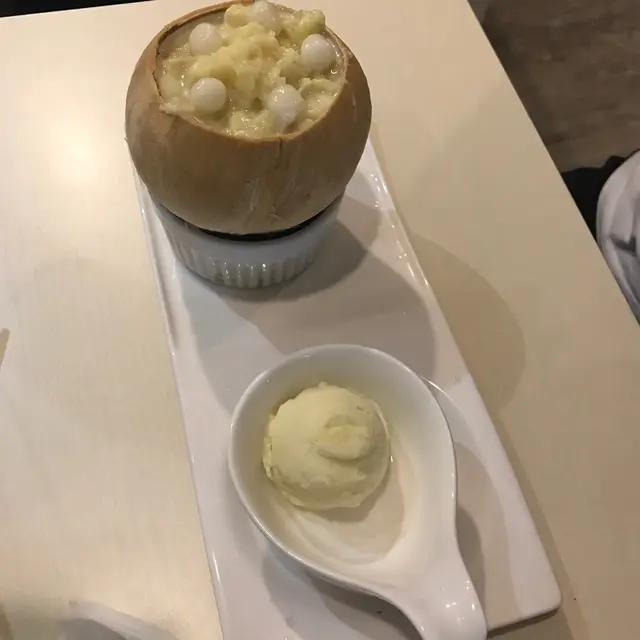 糖宮隱匿在大圍一條小街之中,仿如一個神秘空間,遠離了繁囂,在靜寂的街道上,店內的每位客人卻能悠然自得的談笑風生,喜歡音樂的就在彈結他,而最特別的是糖宮設有戶外茶座,客人可以一邊談天,一邊吹吹晚風,很是寫意。我們去到的是侯正值宵夜時段,店內客人很多,我們就坐到閣樓,樓上我空間比想像中闊落,也是與好友談天的好地方。menu上的甜品很特別,也有不少創新款式,很有小店獨特的風格。我們懷著好奇心,一共品嘗了四款不同的甜品。作為榴槤控,我毫不猶豫地選擇了榴槤椰椰。它由椰皇燉蛋白 加上 西米、小丸子 及 榴槤蓉 做成的,配上一球榴槤雪糕,光是賣相已經相當吸引,絕對可以成功呃like。為食的我二話不說就勺了一大匙蛋白西米榴槤,三重口感一次過滿足了甜品胃,蛋白又香又滑,同時咬到西米粒粒,口感很qq的說。榴槤控自然少不了點評一下榴槤蓉,其實本人本身對榴槤甜品沒太大喜好,總覺得製成甜品的榴槤味道太淡,沒有水果榴槤一般香軟。但糖宮這個榴槤椰椰卻不一樣,除了榴槤的香味得以完全保留,配上椰皇蛋白的味道是超級夾,香甜沖斥到脷底以至整個口腔。再吃一口小丸子也是零違和感。最後當然也少不了配搭榴槤雪糕一齊享用,結果也自然是完全不會失望。這個甜品,完勝。而其他的甜品也是相當不俗,朋友們一致讚嘆不已。讓我再來推介多一道,就是宇治抹茶雪糕燒鯛魚。別以為多人喜歡抹茶,那麼雪糕就一定是重點,那你就錯了,在這道甜品上,抹茶雪糕好吃只是基本。最特別是燒鯛魚,不單止造型精緻,入口天是香脆,特別仔細地制出有微微的燒焦香味,最是獨一無二。配上雪糕和紅彤彤的紅豆,簡直大滿足。…查看更多